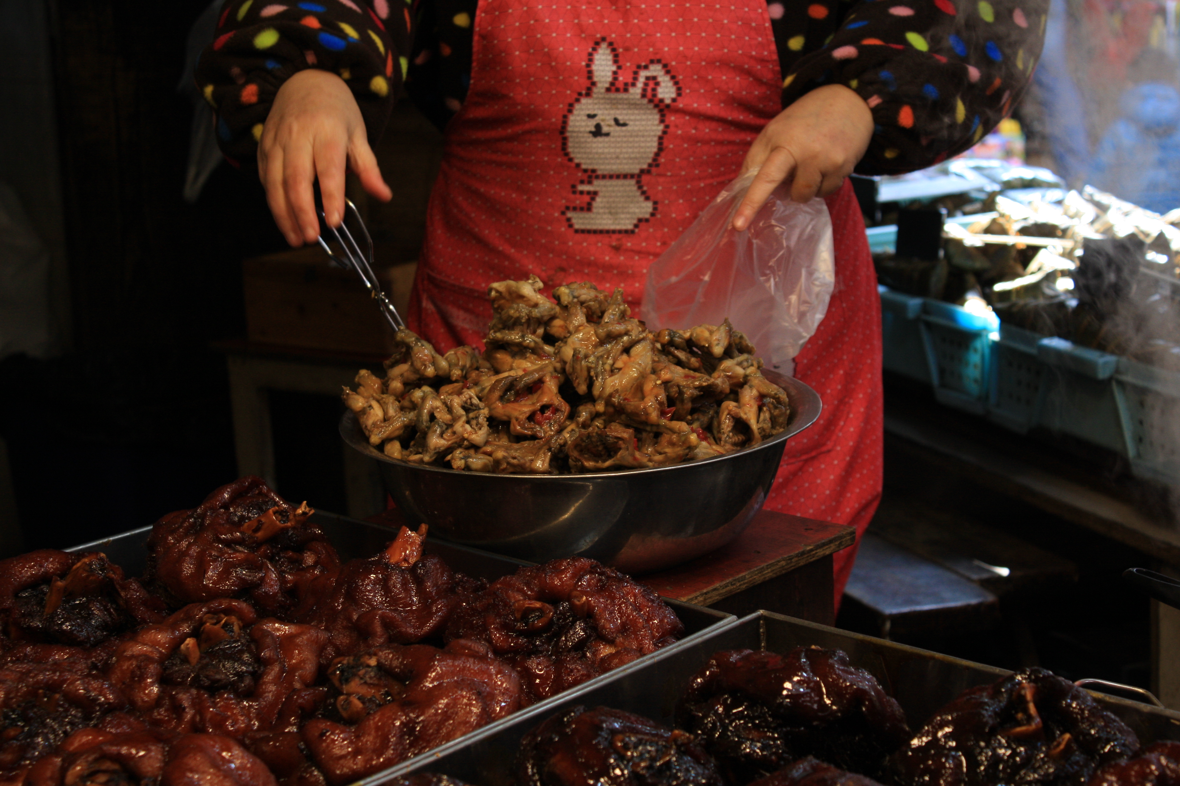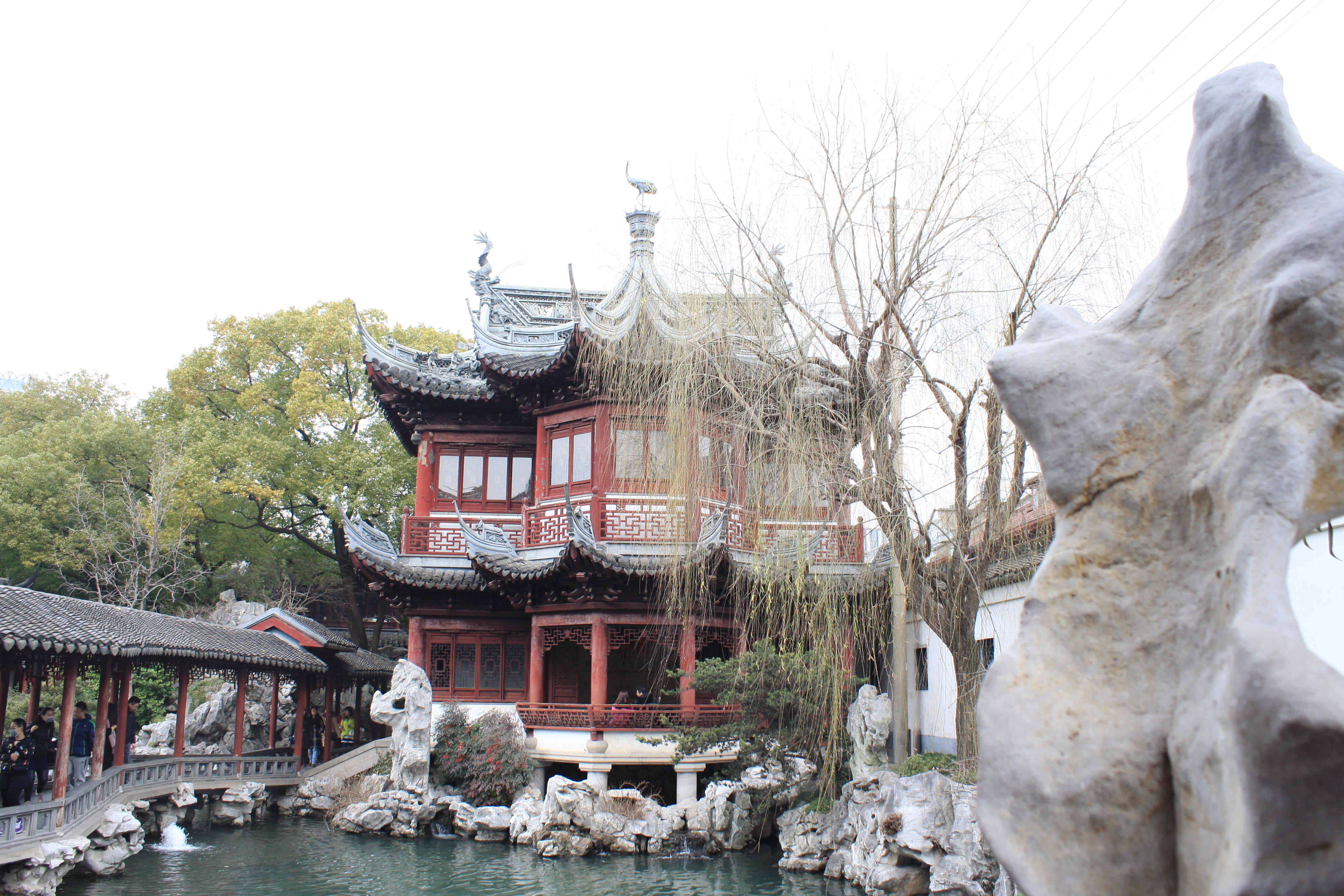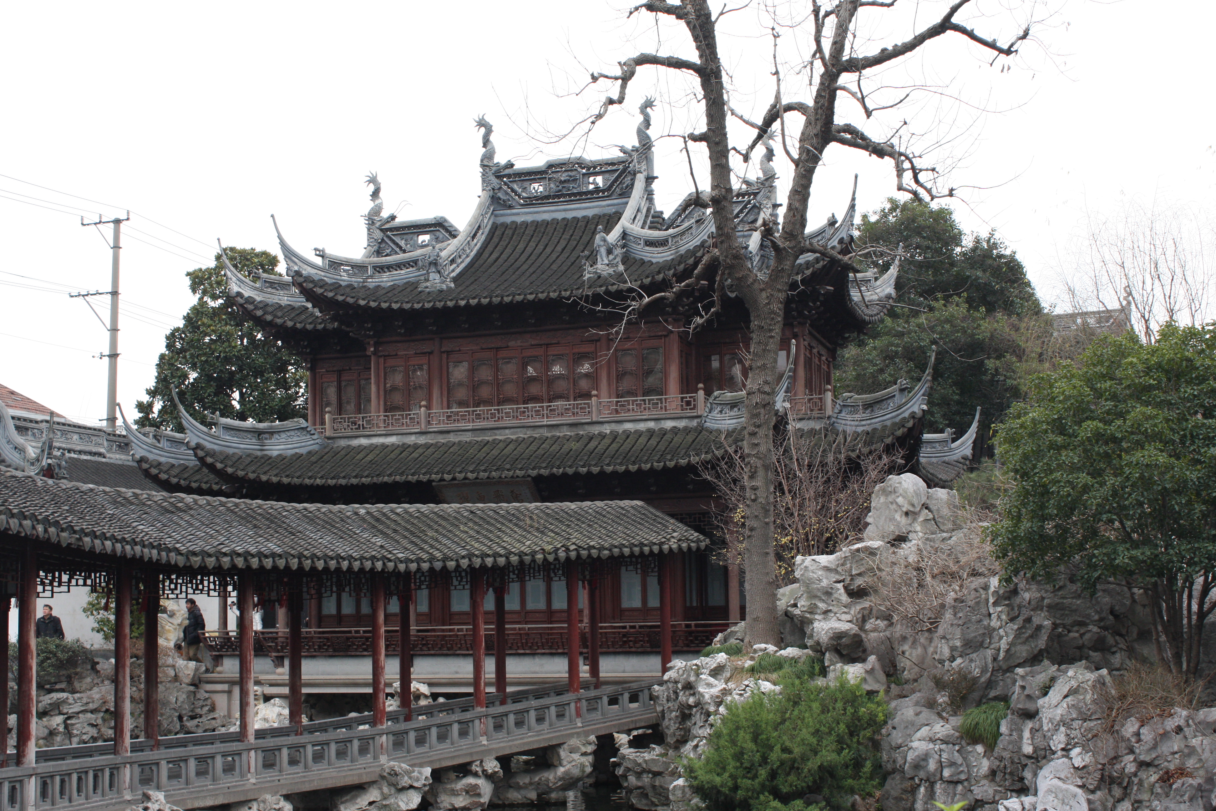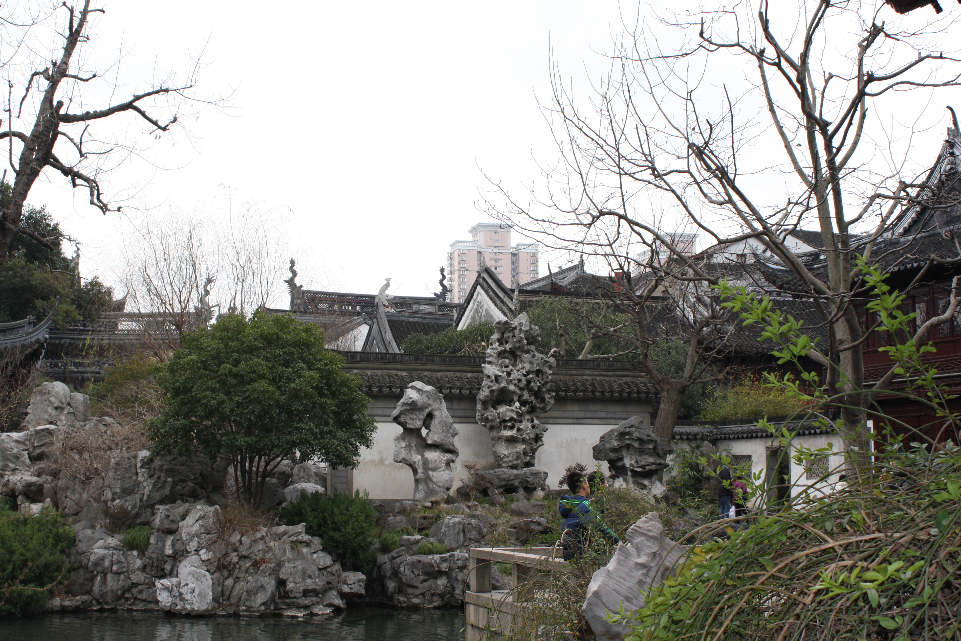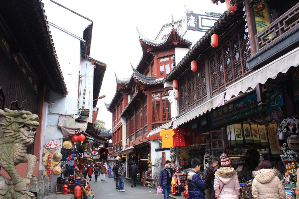 A few city blocks away from the Bund, in the old city, is a slighly quieter place (on weekdays), called Yuyuan (“Happiness Gardens”) which is well worth a visit. Ouside the gardens is Yuyuan Bazaar, aka Yuyuan Market, a real tourist trap, with expensive food and unlimited tourist tat, but interesting for people watching.