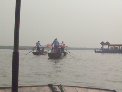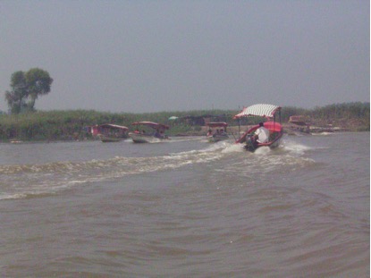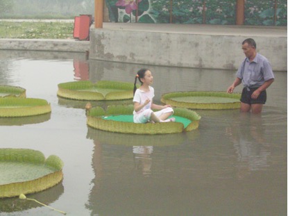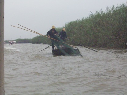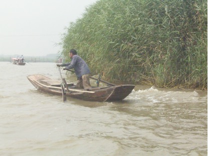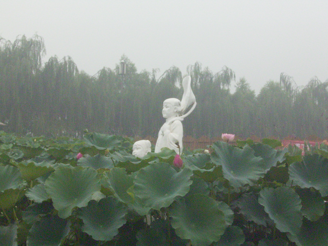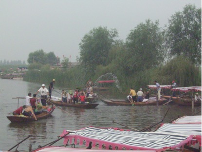 The town itself was not much more than a large village when I visited, with a lot of agricultural traffic, and I seemed to be the only foreigner to have been there since the Japanese invasion, judging by the standard of the hotel and the curiosity shown by the locals (and even other tourists (all Chinese)). However, most of Baiyang Lake (Baiyangdian) is located in the county, and that was well worth visiting, which I did on two consecutive days – once using a motorized boat and the second time on a traditional fishing boat (with rower). It was an interesting mixture of locals going about their daily business and recreation – fishing, swimming, boat-racing, having water fights – and tourists visiting the various attractions (lotus gardens, war museum, etc). The lotus is a major food speciality, both the seeds and the roots being popular.