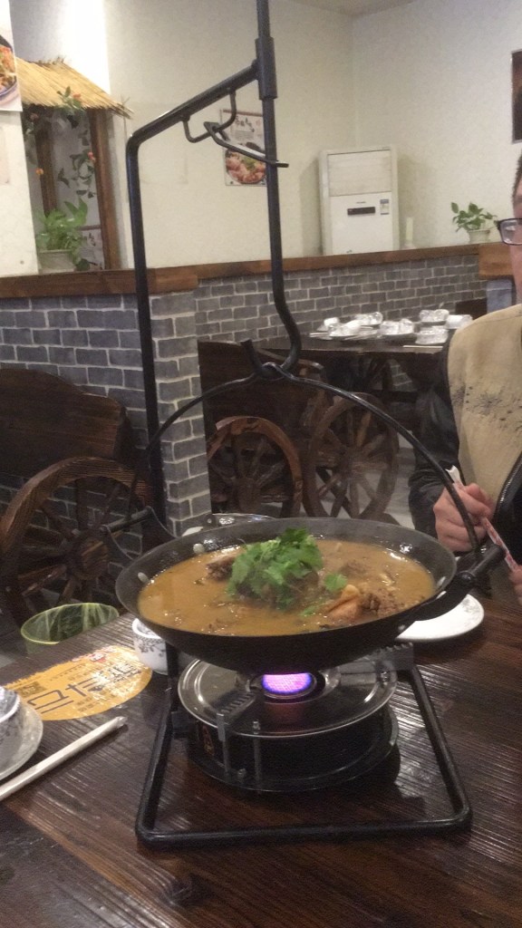 On the way back into town, we stopped off at a small restaurant, which was about to close. They really didn’t have much food left, but we did get some lamb bone stew, with gristle and fat, to accompany some plain boiled rice. I did like the presentation, though.