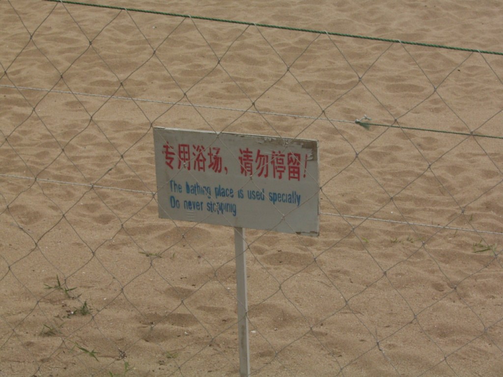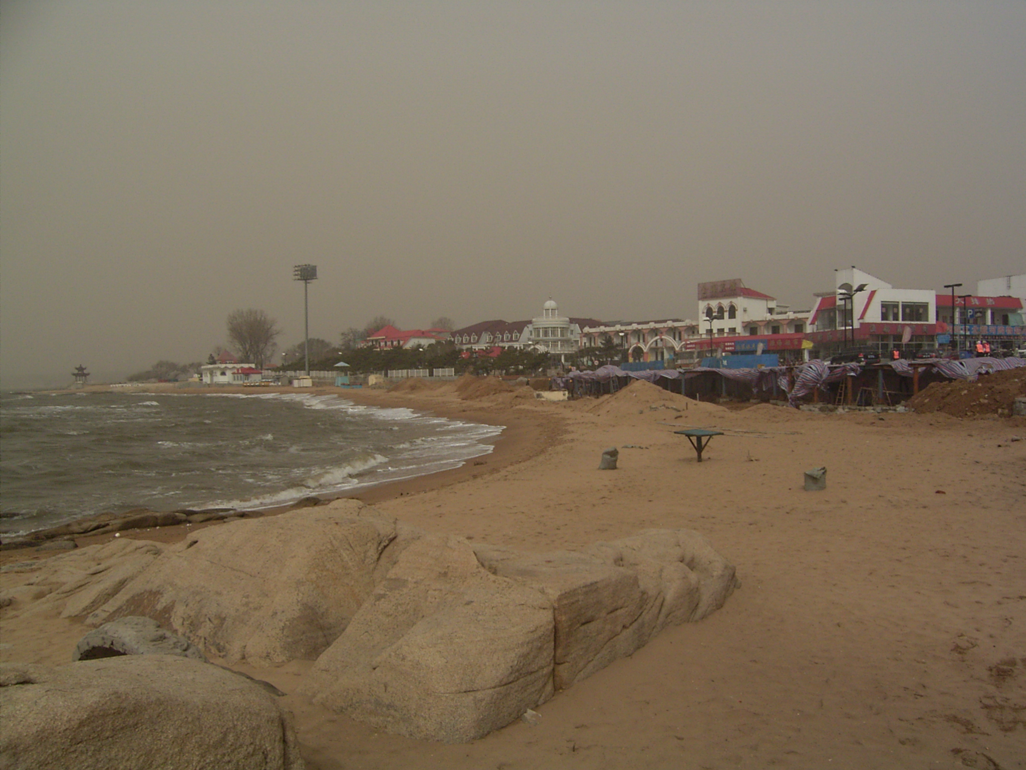Within a few weeks of arriving in Qinhuangdao, a couple of students were kind enough to take me for a day trip to Beidaihe District. At that time, this meant changing buses at Yanshan University (known locally as “Yanda”, short for “Yanshan Daxue”), which I didn’t visit until much later. There have been a lot of changes since that visit: the whole town has been ‘upgraded’ – although most of the buildings are the same, they have been cleaned up, the street stalls have largely disappeared, there is new street furniture instead, and the beach has been divided up into different areas, the most popular of which are now fenced off and only accessible by buying a ticket. They were free back then, in a cold and windy March 2007. The pictures above are from that visit.