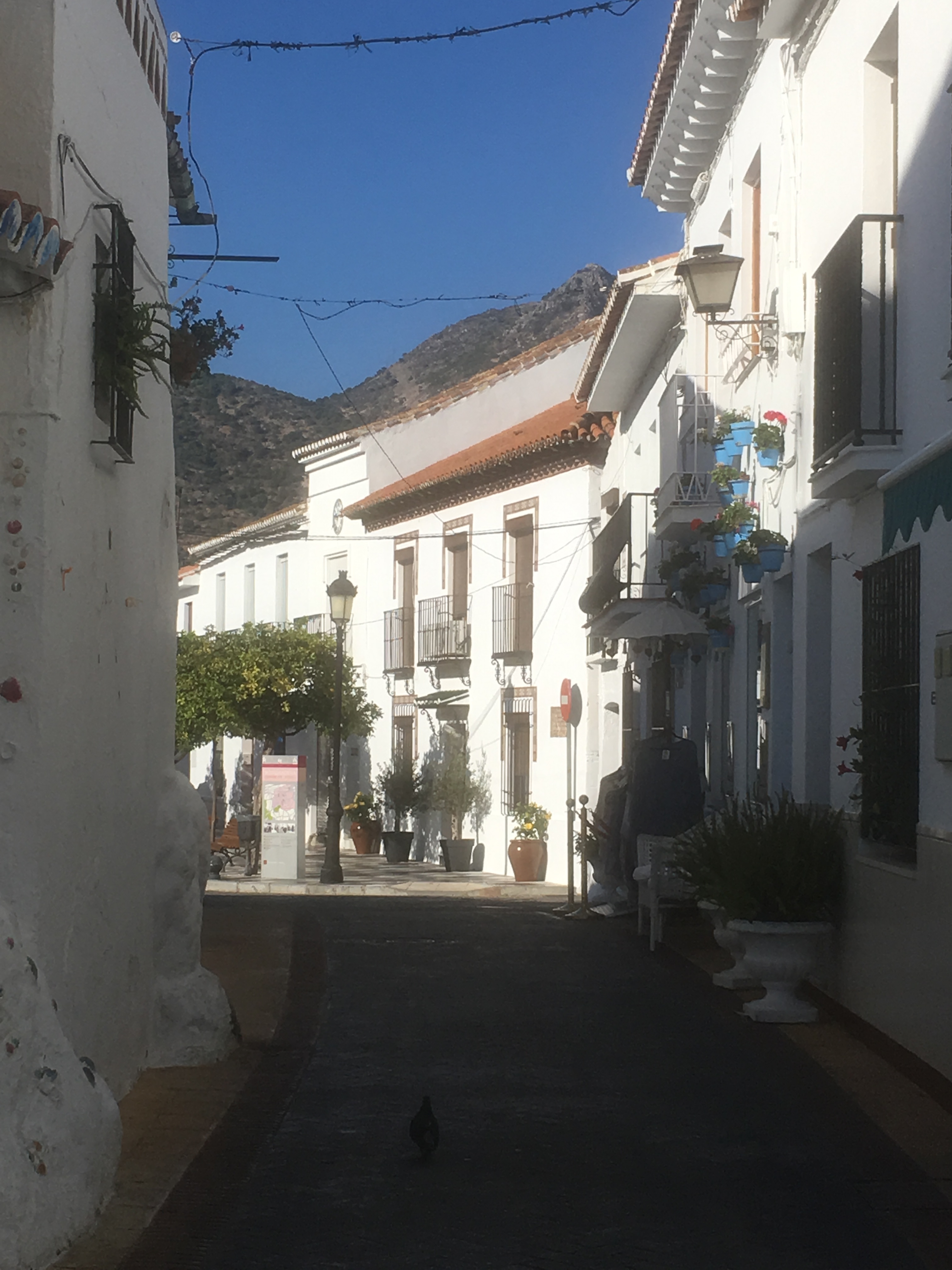 One of the buses (from Torremolinos, and often full by the time it reaches Benalmadena or the Arroyo) continues on along the mountainside to Mijas, which is a real tourist trap, where there are a lot of shops selling the same stuff (much of it leather), most of the restaurants are tourist-oriented, with the usual Spanish delicacies of pizza, pasta, burgers, and a full English breakfast. Some people love it, but it’s not for me, despite the views, and the bits that are genuinely Spanish. Although it should be said that at some times of year, many of the tourists are Spanish too.