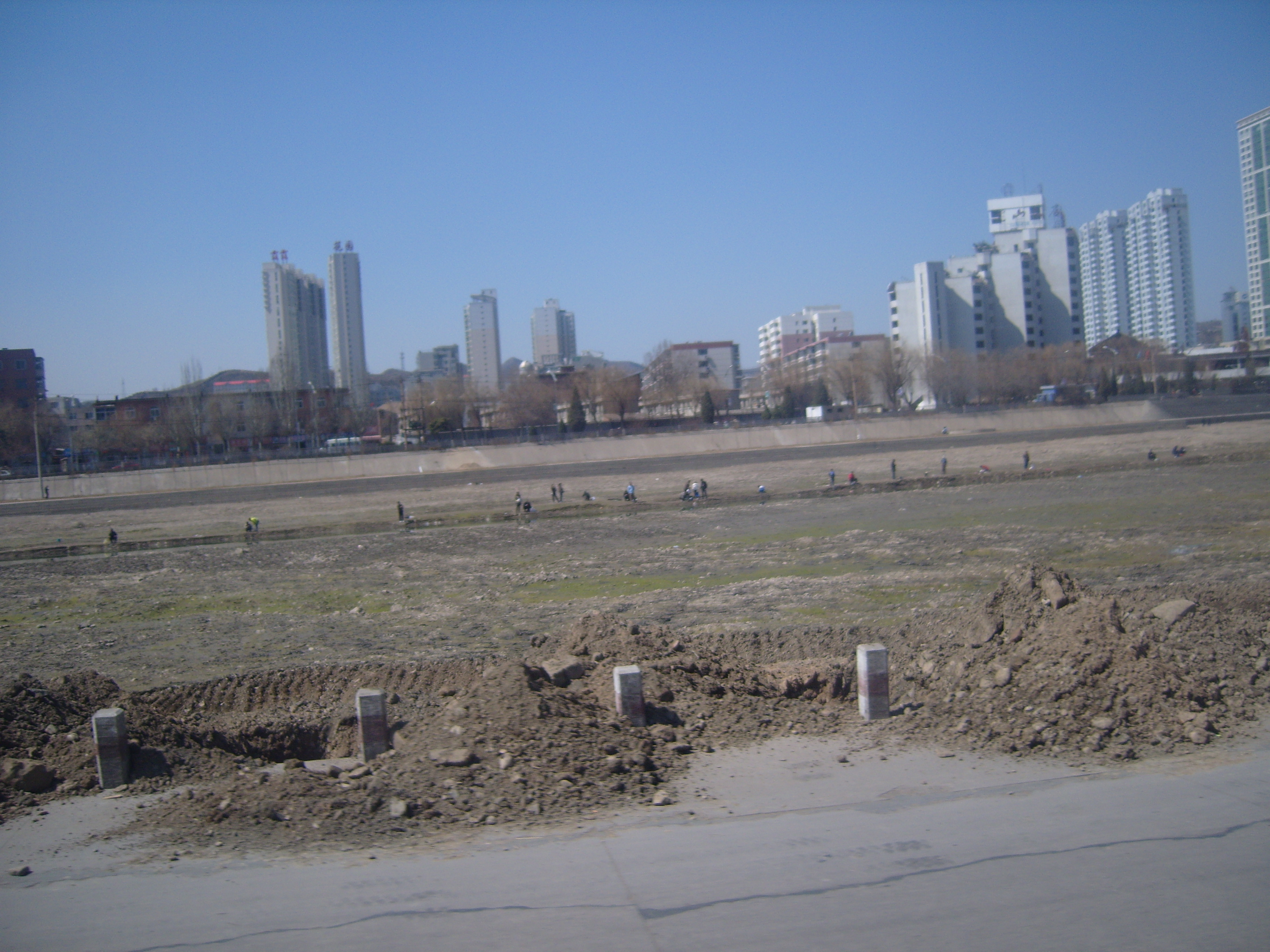 The first group of photos are of the countryside (including views of the Great Wall) along the way and of the approach to Chengde city – an interesting feature on the way in was the dry river bed.