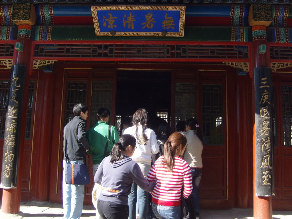 I visited Chengde three times (in 2006, 2009, and 2010) with groups of Tourism students (and a few teachers) as part of their course. Unfortunately each time during the month of April, when it was still very cold at night (Chengde is over 1,000ft above sea level) and the ground and trees were still brown, and not the green they would become in late-May or June. On the other hand, it did mean there were few other visitors about. It gets very crowded during the tourist season, especially since it is so close to Bejing.