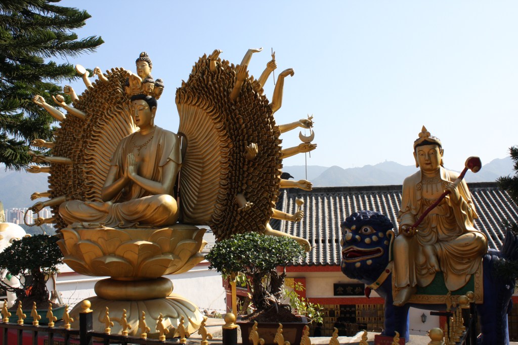 The ‘Monastery’, also known as ‘Man Fat Sze‘ in Cantonese, is not really a monastery (no monks live there), and it was quite a climb in the heat and humidity on the day we went there, but it was well worth seeing, which is probably why it has been used so often in films and TV programmes based in Hong Kong (probably most famously “Infernal Affairs”). The views looking out from the monastery were also pretty good. Again, I took far too many photos. I’ve tried to whittle them down, but the Buddhas (and Guanyin and her non-performing terrapins) are just too interesting.