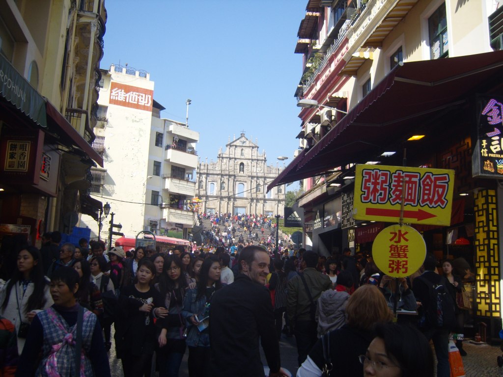 My Australian friend had a former English colleague, who had moved to Zhuhai with his Chinese wife, and they had a new-ish young daughter. Hence this particular choice of destination. It turned out to be pretty nice, but it rather obviously wasn’t going to stay that way, because the nouveau riche were moving in from Guangzhou in large numbers, and as a consequence, the place was being developed at some speed. On the other hand, it was possible to walk to Macau, whose casinos lit up the Zhuhai sky at night. We did go through to Macau for the day, but it was shortly before Spring Festival and the place was the most crowded I have ever experienced, just heaving with Chinese shoppers buying up everything (though mainly Pampers, it so happened). It was impossible to choose where to go, because once in the crowd, the crowd just pushed you along wherever it wanted to go. Getting a bus back to the border was a nightmare of pushing and shoving.