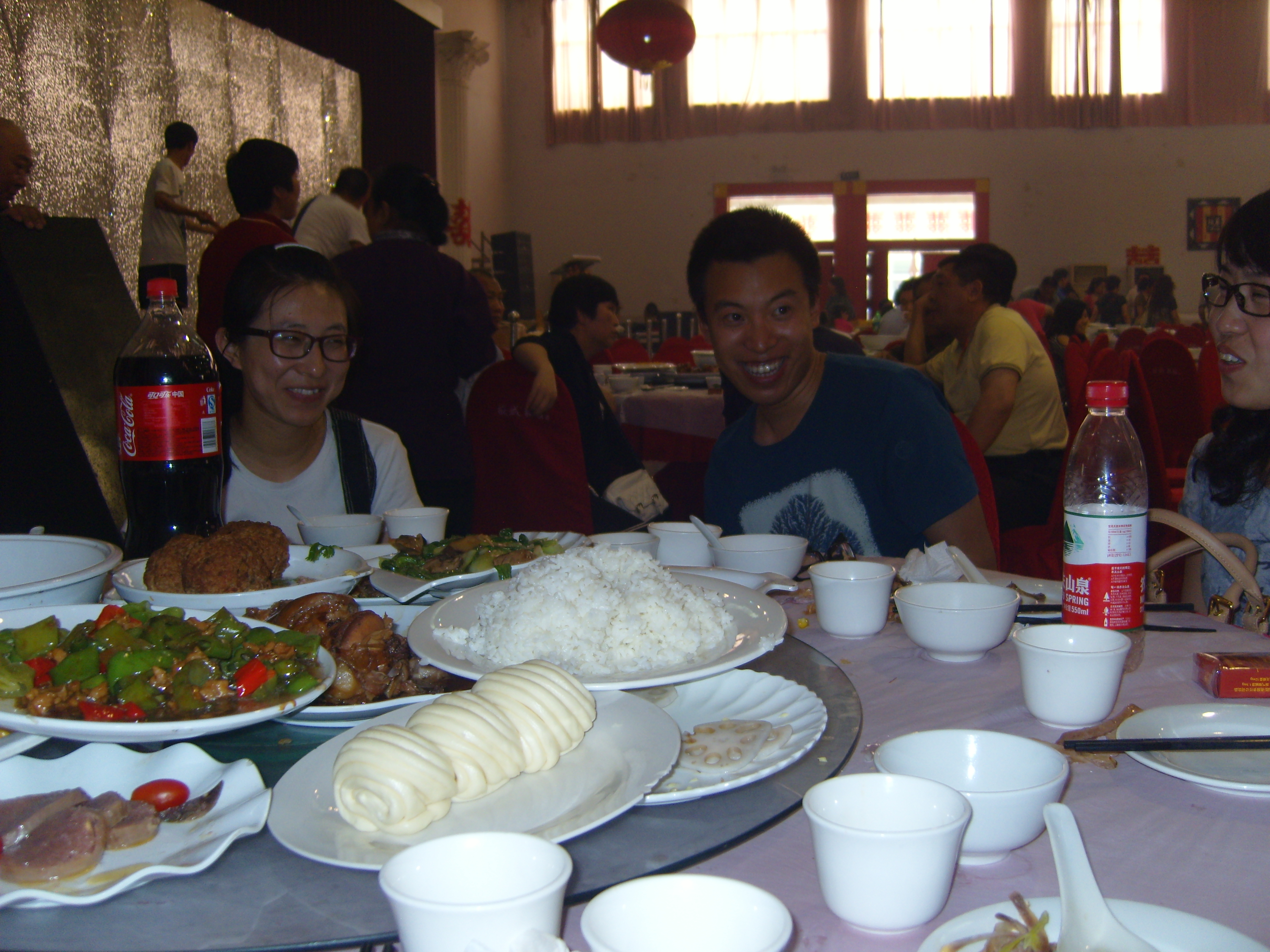 I arrived in the afternoon of the day before the wedding, had a quiet dinner in a dumpling restaurant near the hotel, woke up with a stomach upset, and spent the morning with another student friend, trying to contain what little was left in my digestive system, while seeing the major historical and tourist attraction in central Handan, in very hot and humid weather (it was like walking through steam), then went off to the wedding (feeling slightly better at the beginning, and much better by evening).