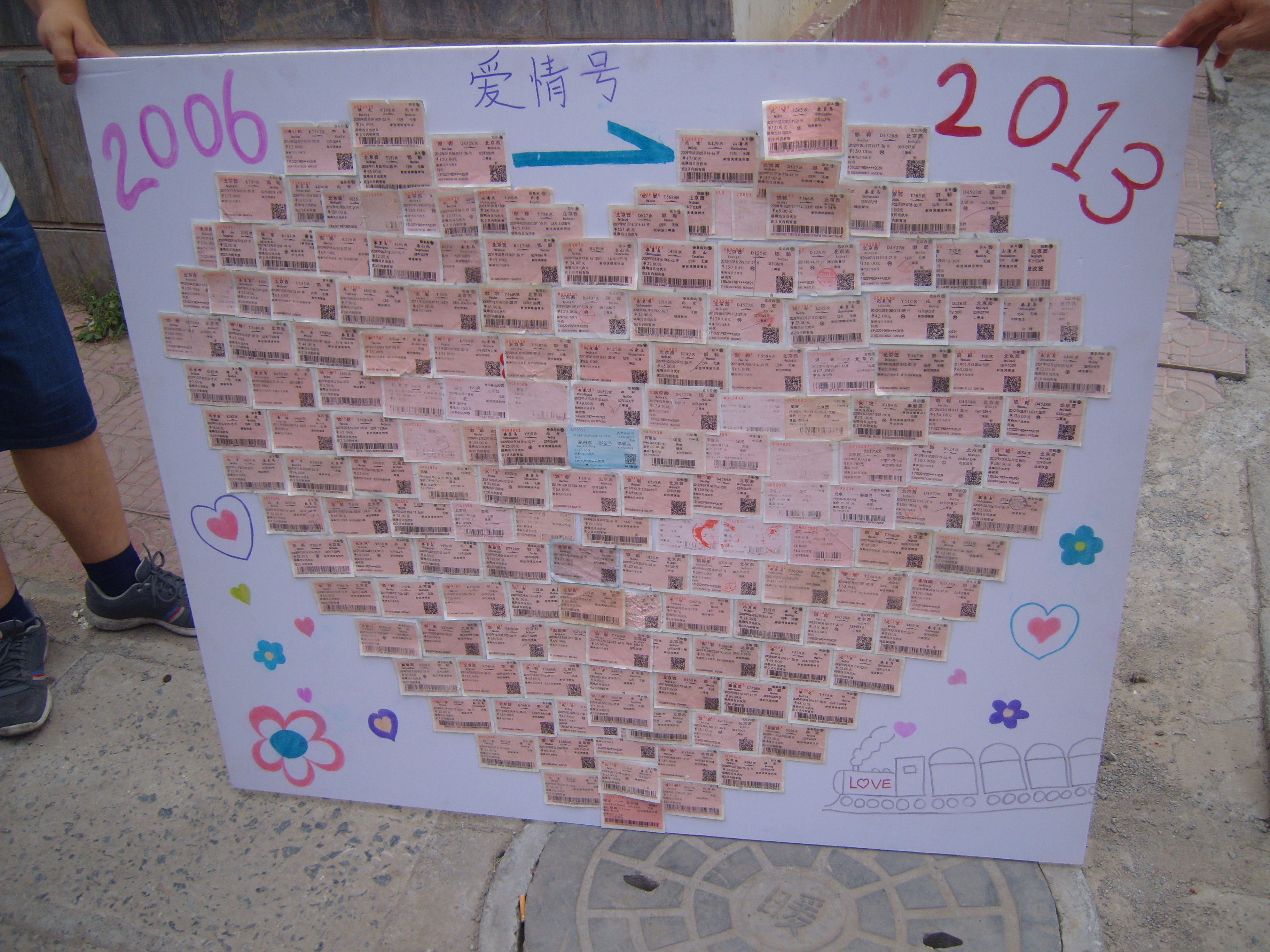 The reception was surprisingly (for me) large, with a banquet, speeches, etc. I was seated at a table with more of my students, mostly from Handan. The last picture is of a collection of used rail tickets symbolising (indeed, showing some of) the many journeys the couple made to visit each other, while studying in different cities.
