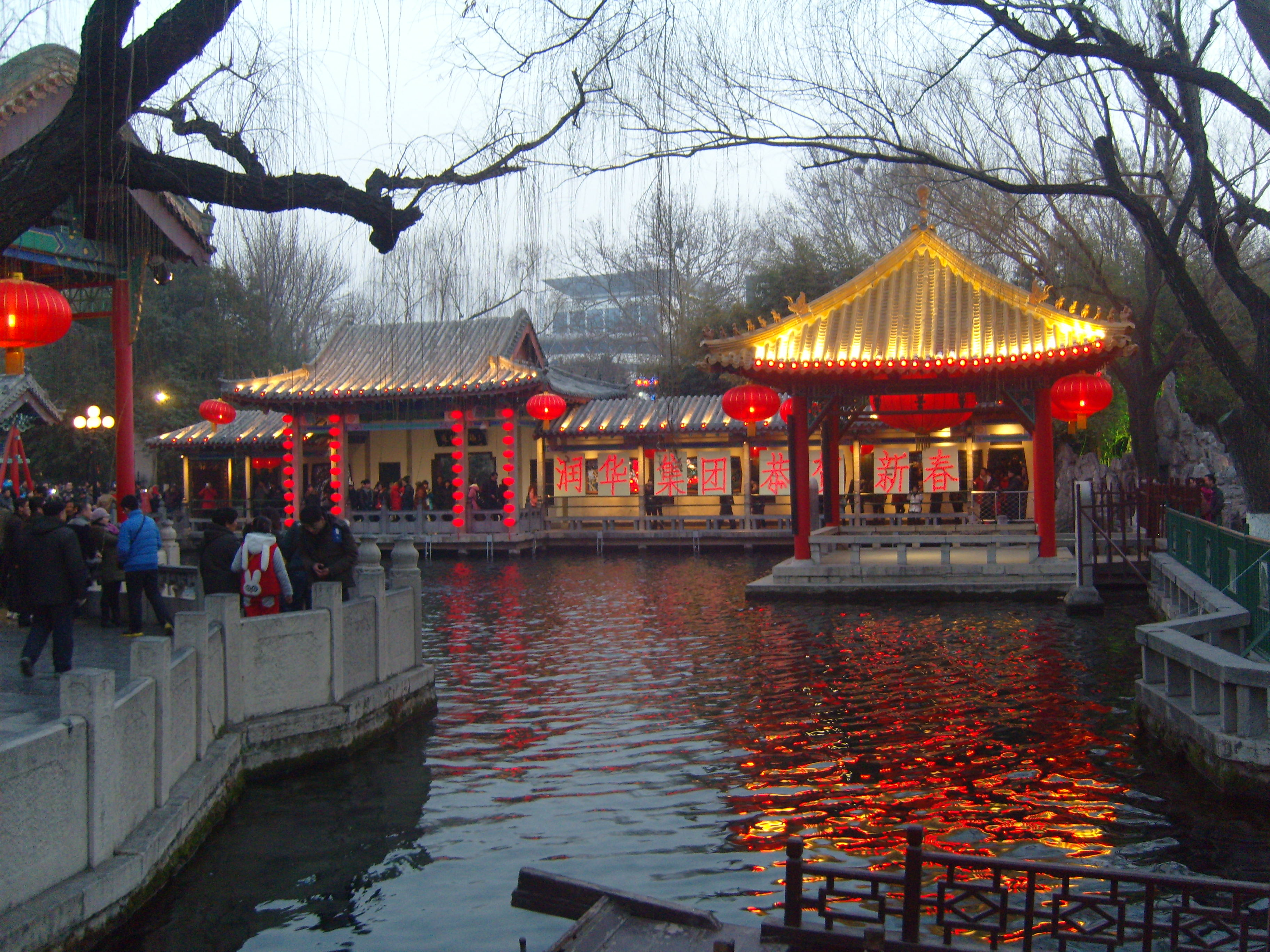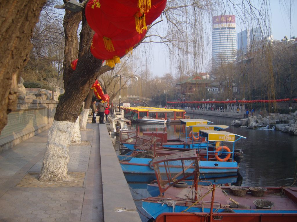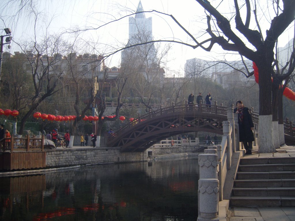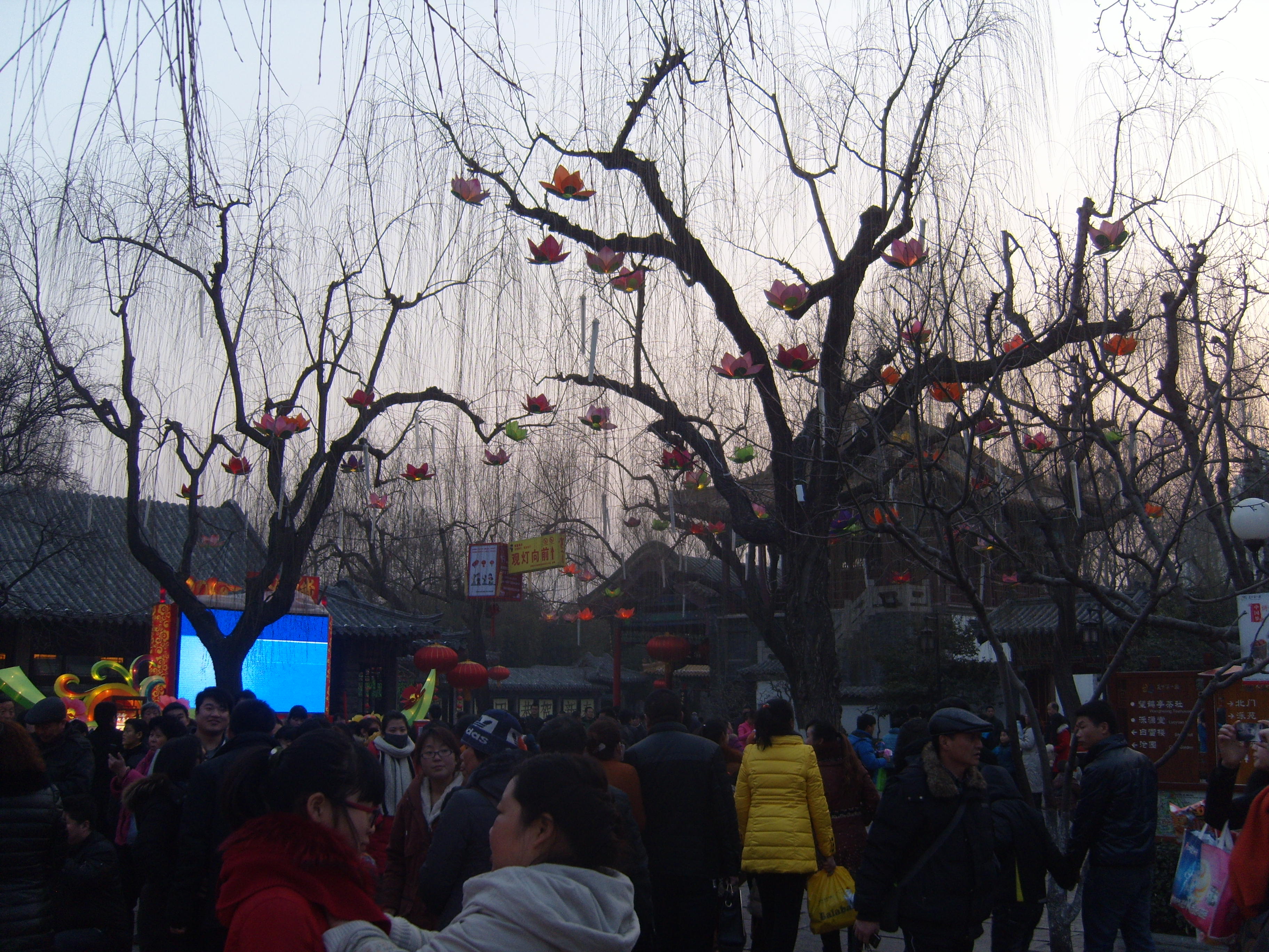 During that same visit, we attended the Lantern Festival (last day of the annual Spring Festival) in Baotuquan park, which involved walking into town along the moat from the Central Campus of Shandong University.