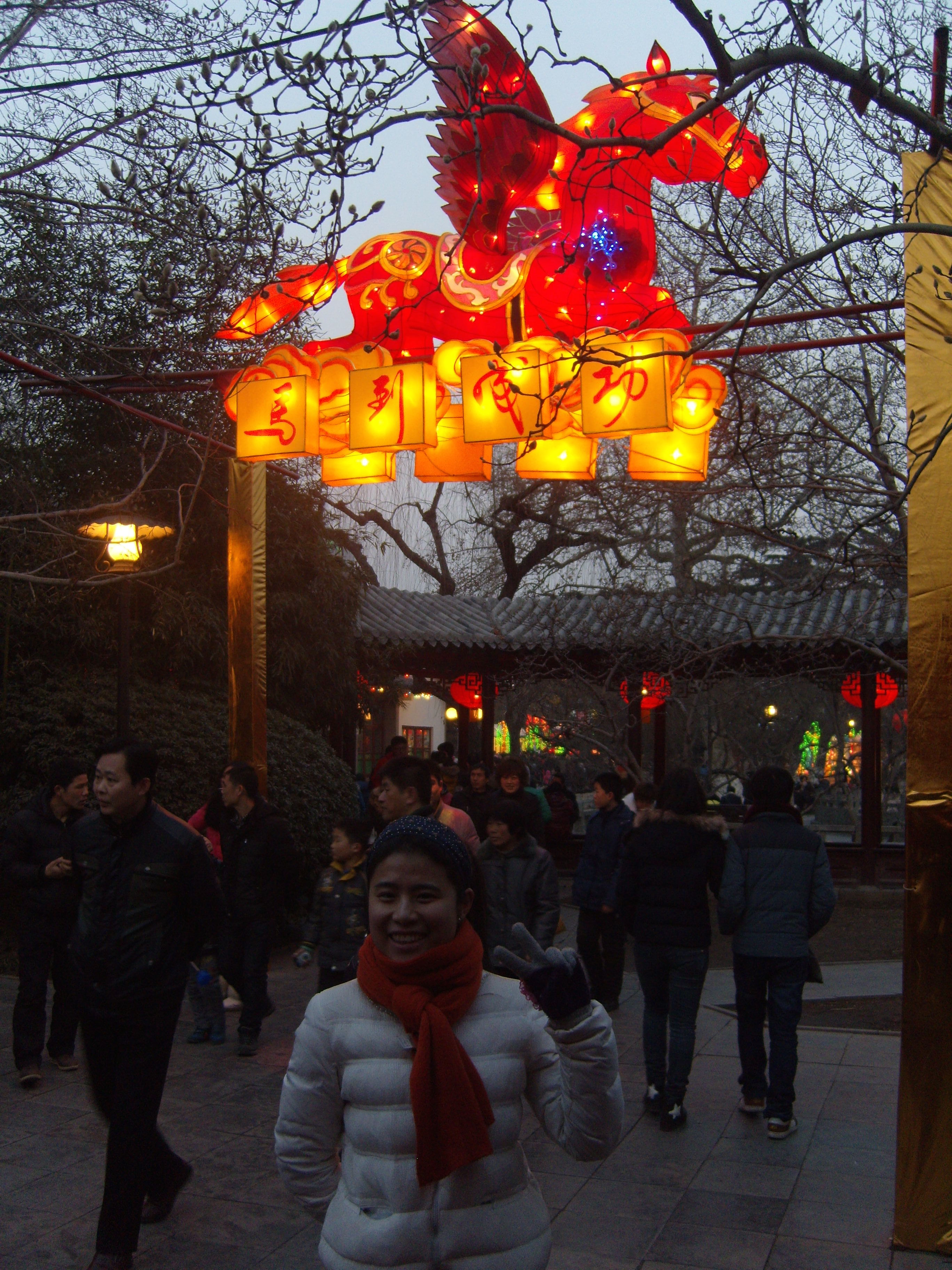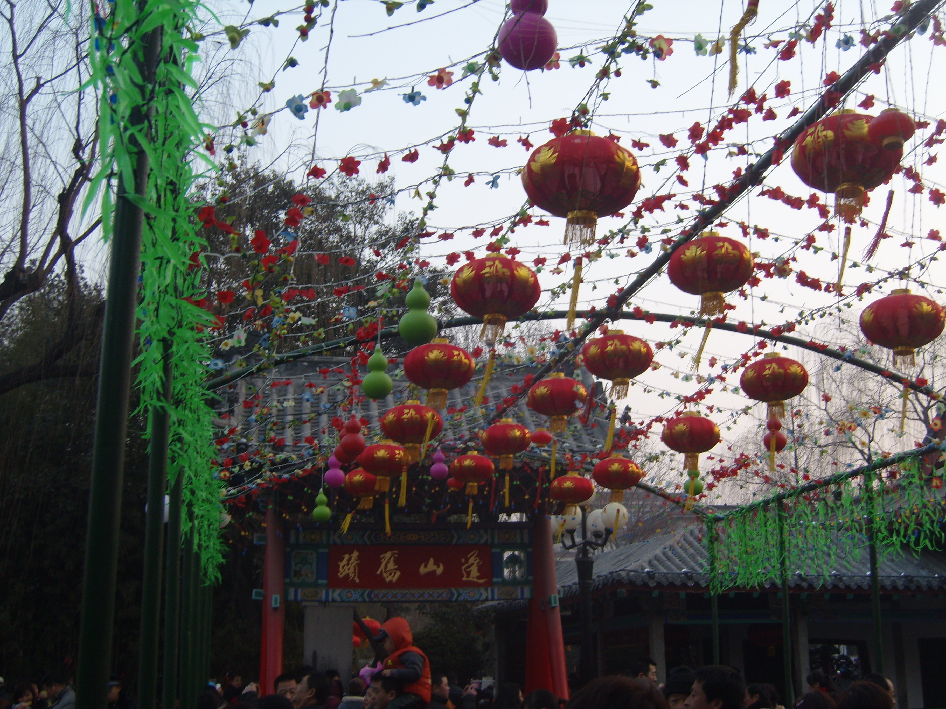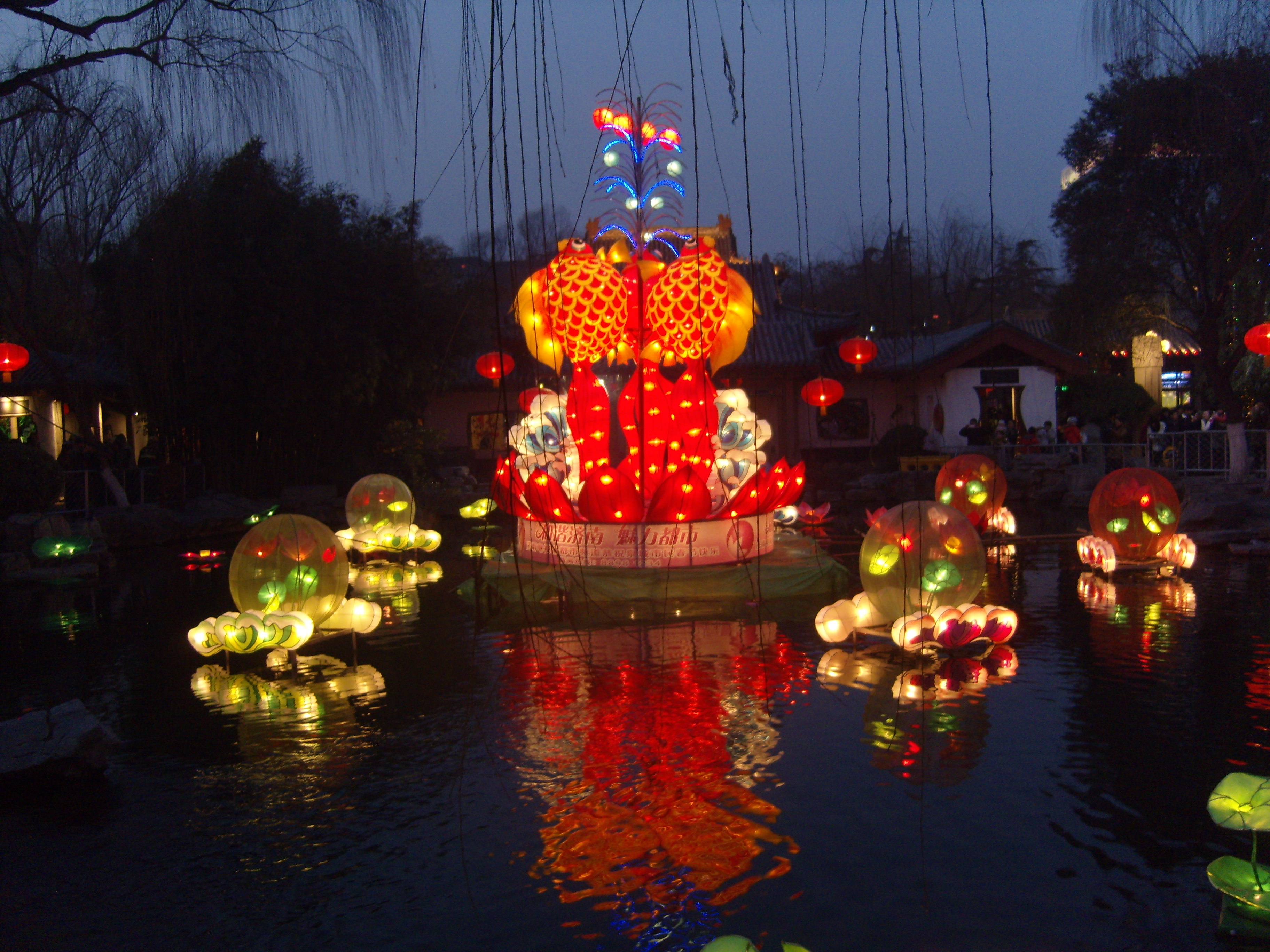 During that same visit, we attended the Lantern Festival (last day of the annual Spring Festival) in Baotuquan park, which involved walking into town along the moat from the Central Campus of Shandong University.