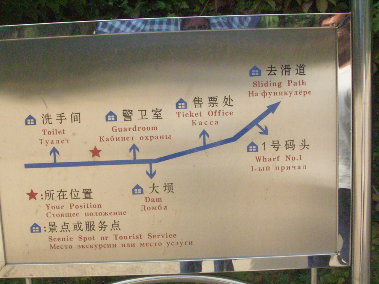 After the descent by chairlift, it’s only a short distance to the lake, which is well set up for tourists, with signs in Chinese, English, and Russian.