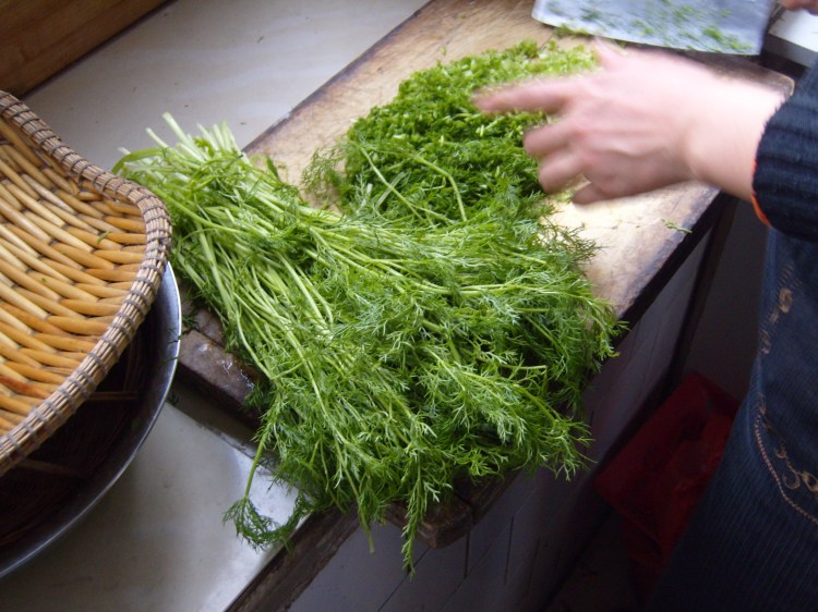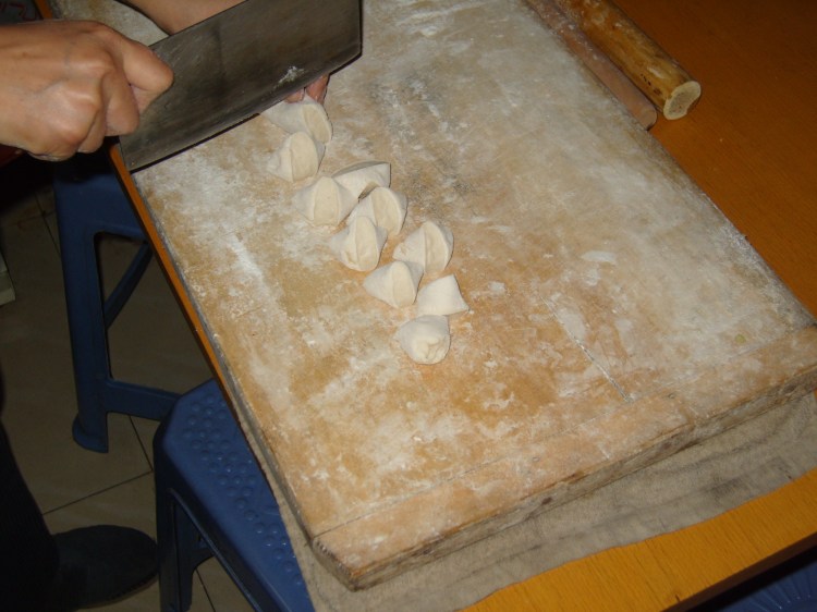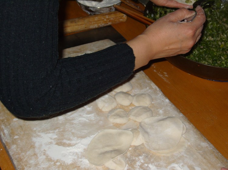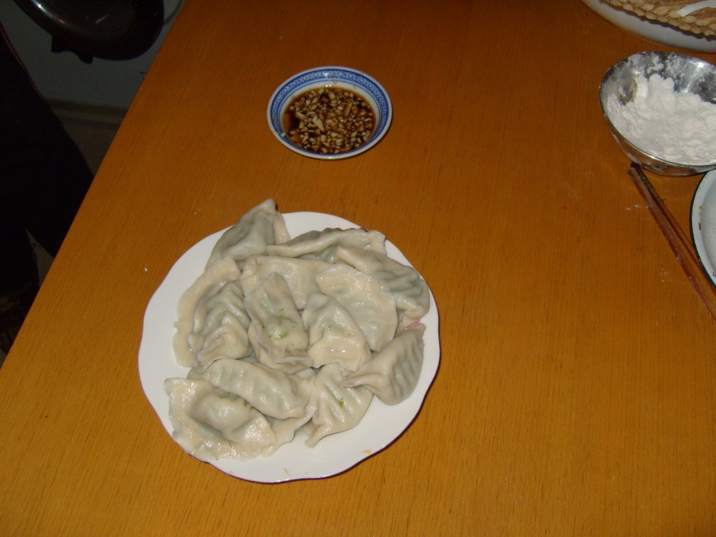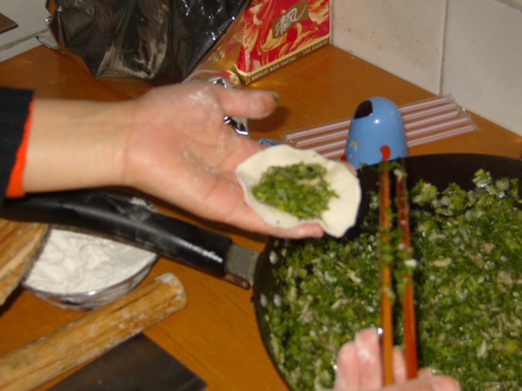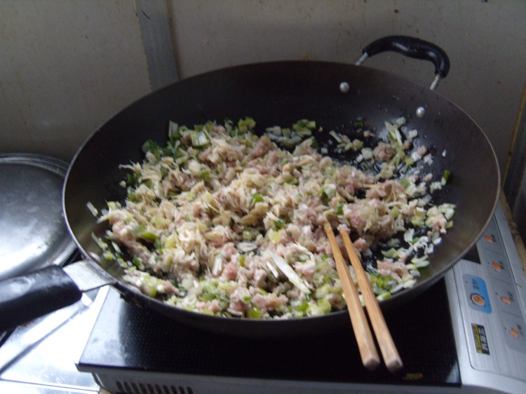 The example here is for pork and fennel jiaozi (as made by my head of department and her daughter in Qinhuangdao).