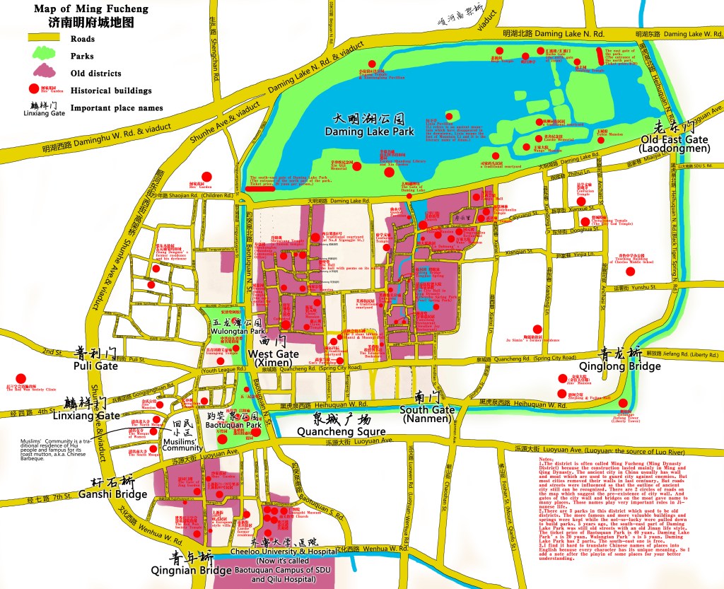 A student, who had an interest in local history, provided me with these maps of old Jinan. The notes are his.