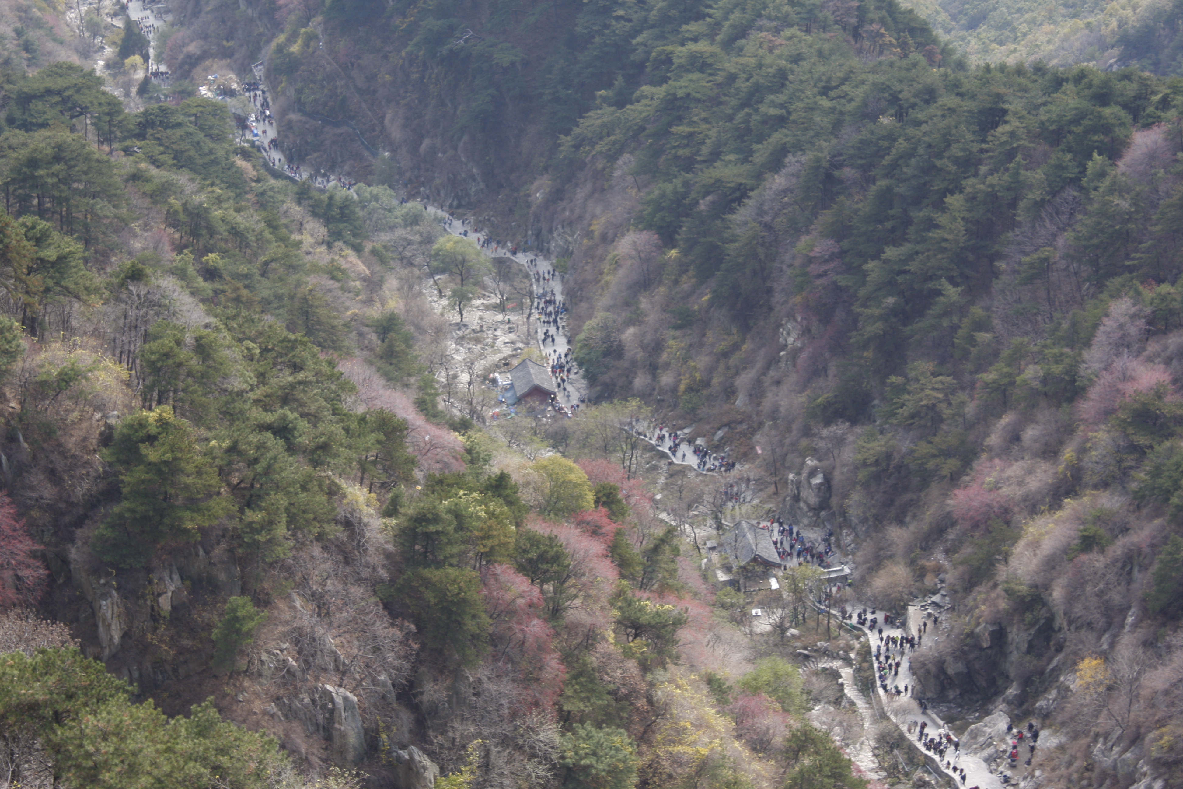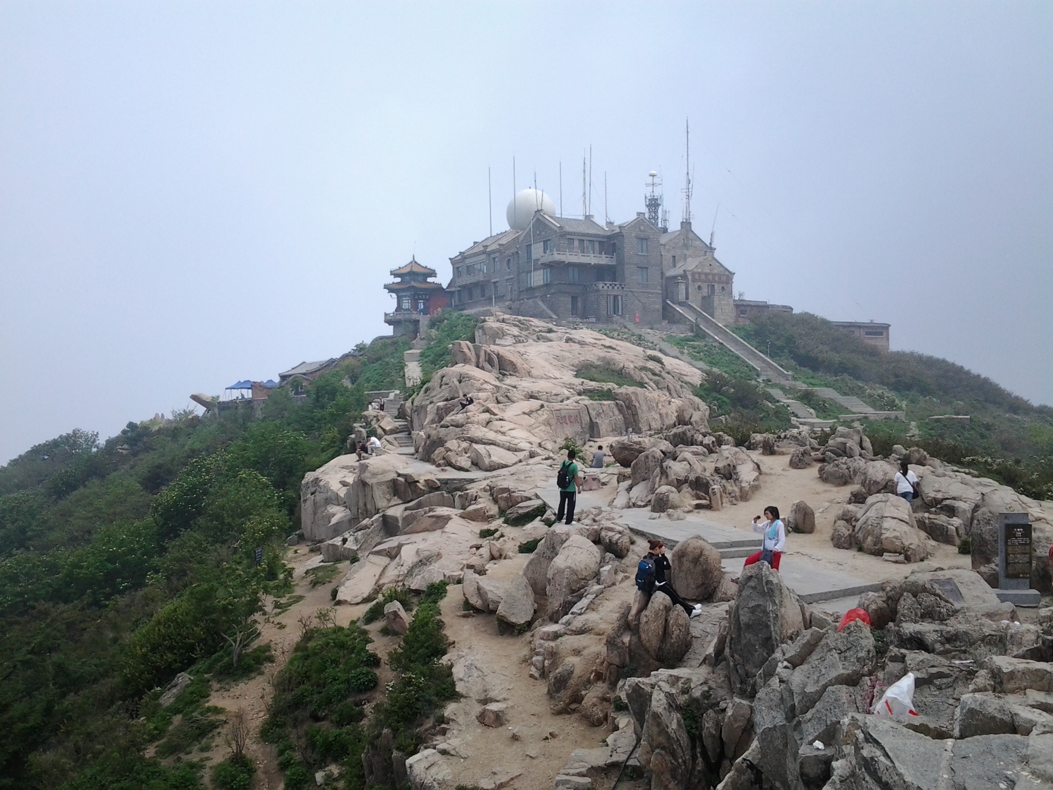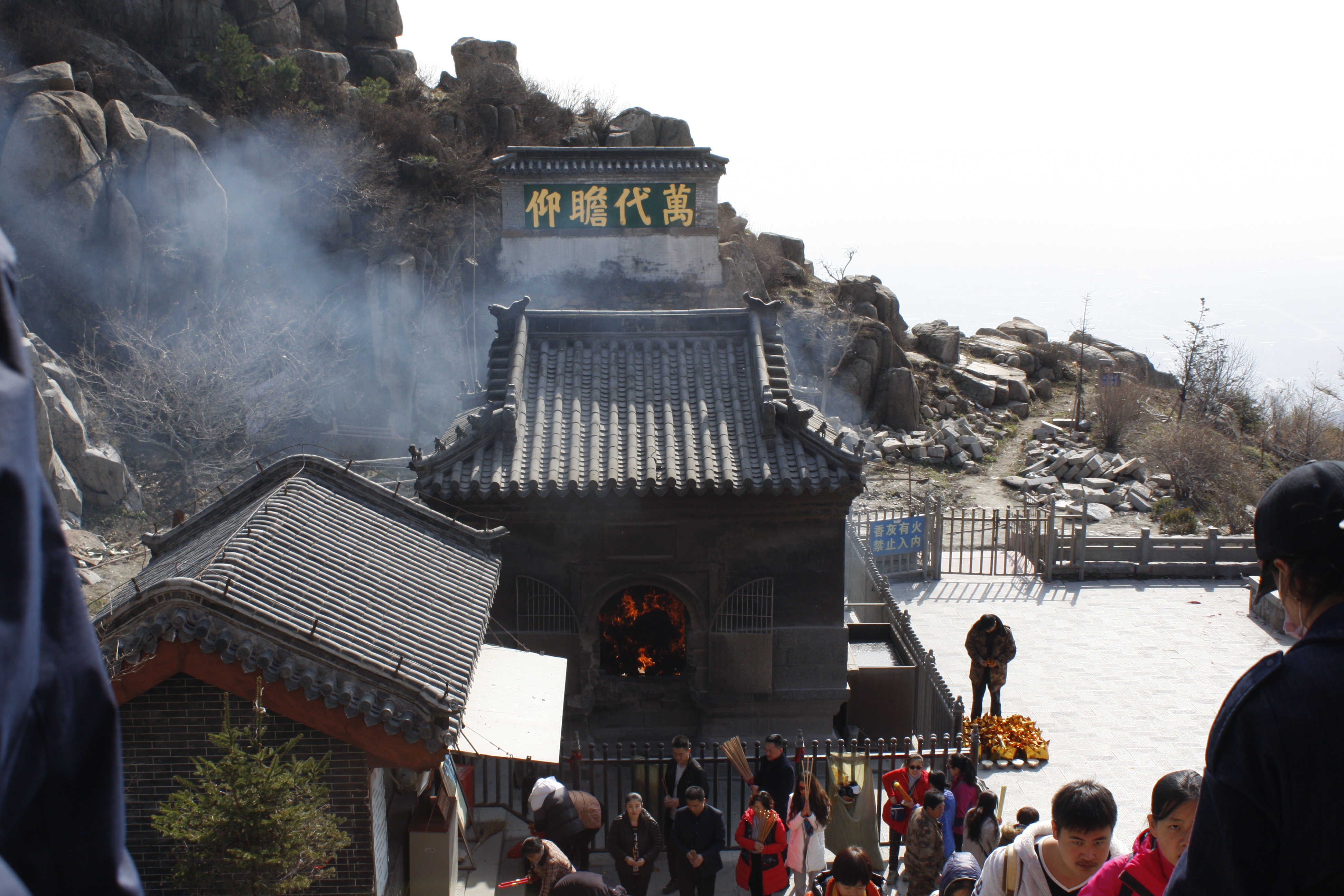Most tourists try to stay for the sunrise, which can be spectacular when it’s not too misty to see anything. In May 2013, it was very misty; in October 2016, we had to get the bus back to Jinan before dark.