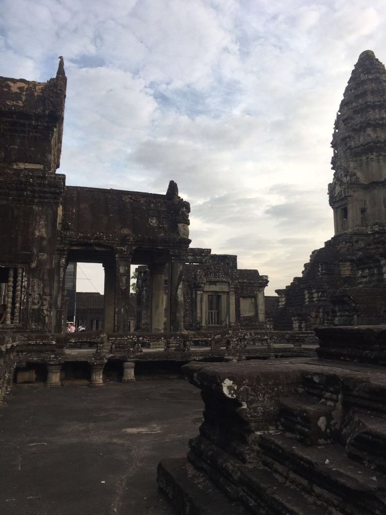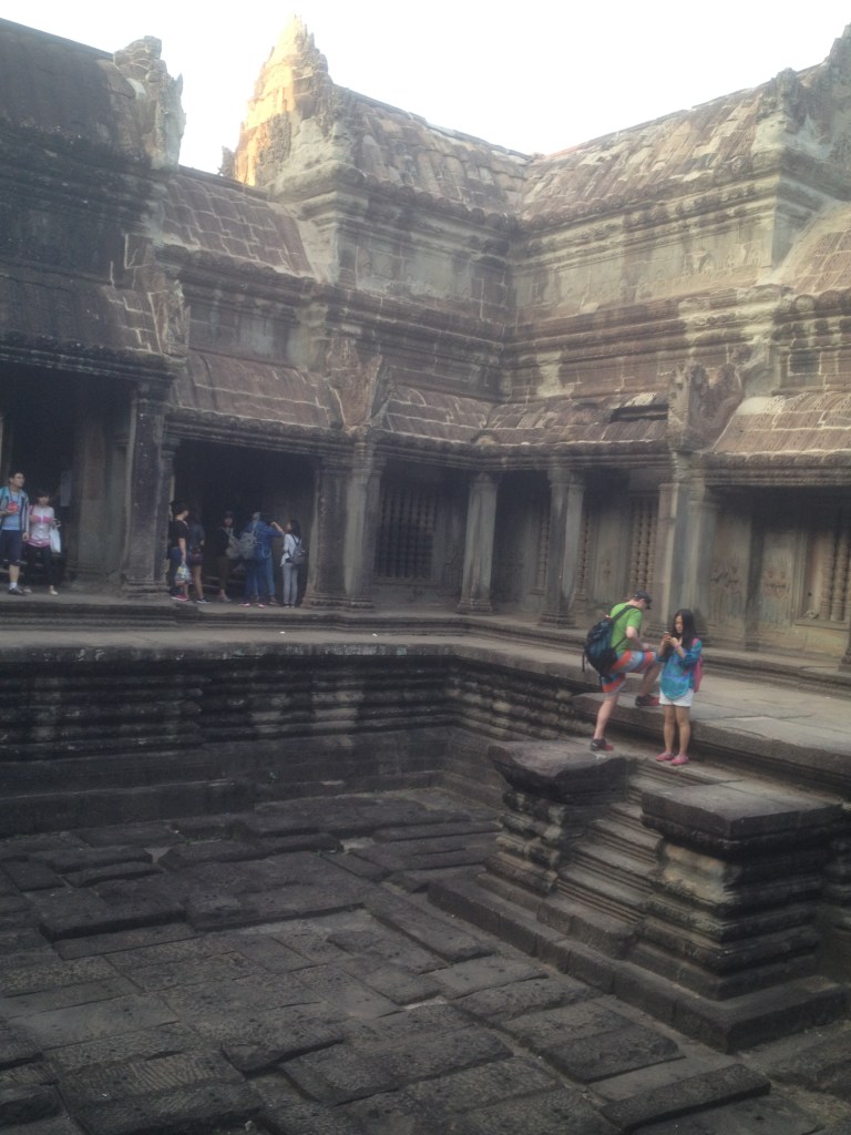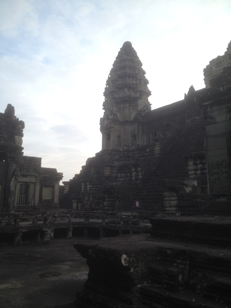 We were up before dawn to travel by tuk-tuk to Angkor Wat – because watching the sun rise from behind the temple complex is one of the main events. It was a surprisingly long walk in the dark from the entrance to the viewpoint.