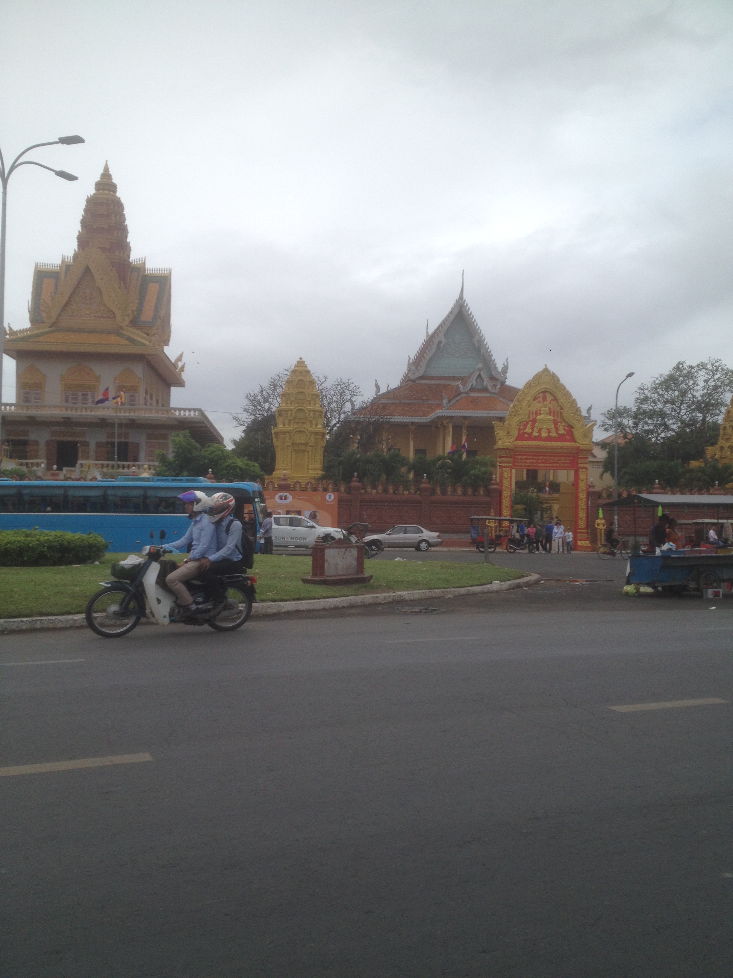 Phnom Penh is a mixture of French colonial, modern Stalinist, and ancient Cambodian architecture interspersed with modern kitsch. On a free day, I took a tuk-tuk tour of the city, because the royal palace was closed, so I saw more than just the tourist traps. The traffic was even scarier than in China, mostly because of daredevil moped and tuk-tuk driving. There were even a few cyclists still alive in the mix.