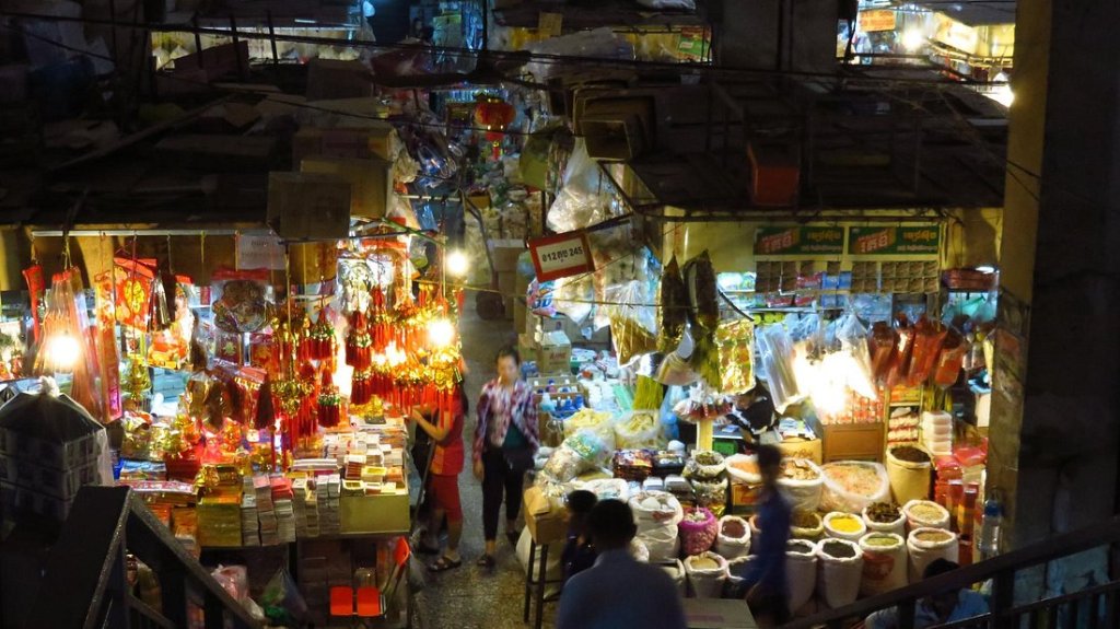 Our hotel in Phnom Penh was close to Orussey Market. This is definitely one for locals, as it sells food and kitchen supplies as well as spare parts for things, rather than souveniers or touristy stuff (though I only looked downstairs; there are three floors apparently). Any kind of things. In fact, just about anything at all. I found it early one morning, while looking for breakfast, as the stallholders were still setting up and before it became busy. There’s not much space to move around between the stalls, so it’s not for the faint-hearted.