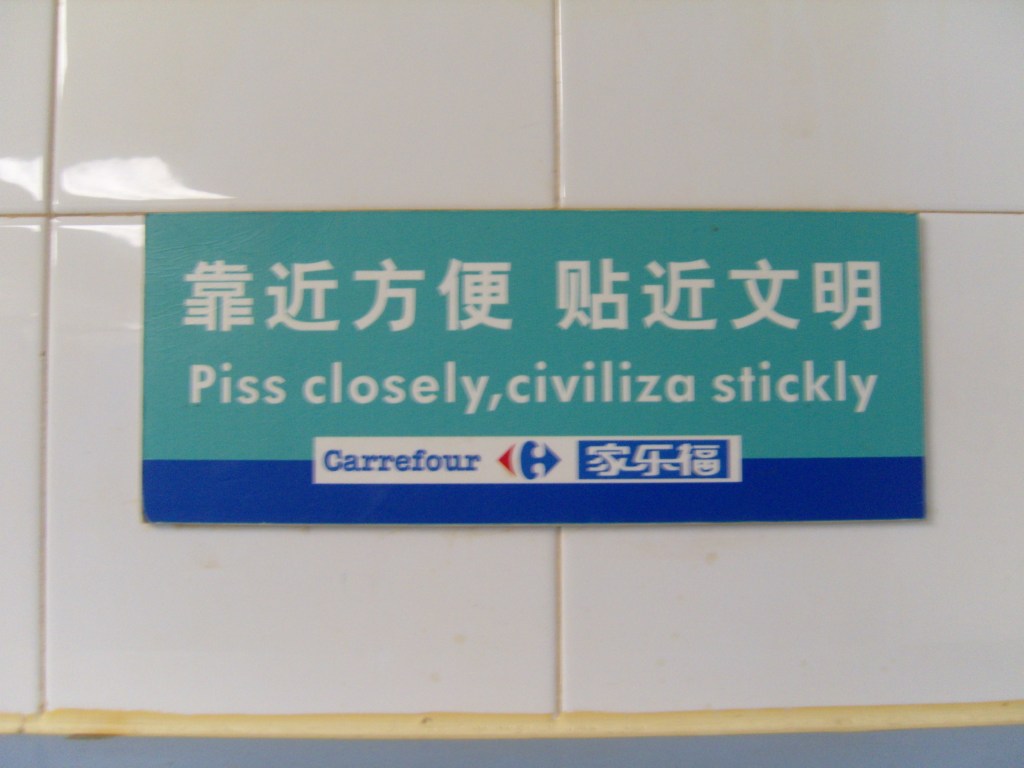 In a public loo, there was a sign, which may be the local motto of Xiamen: