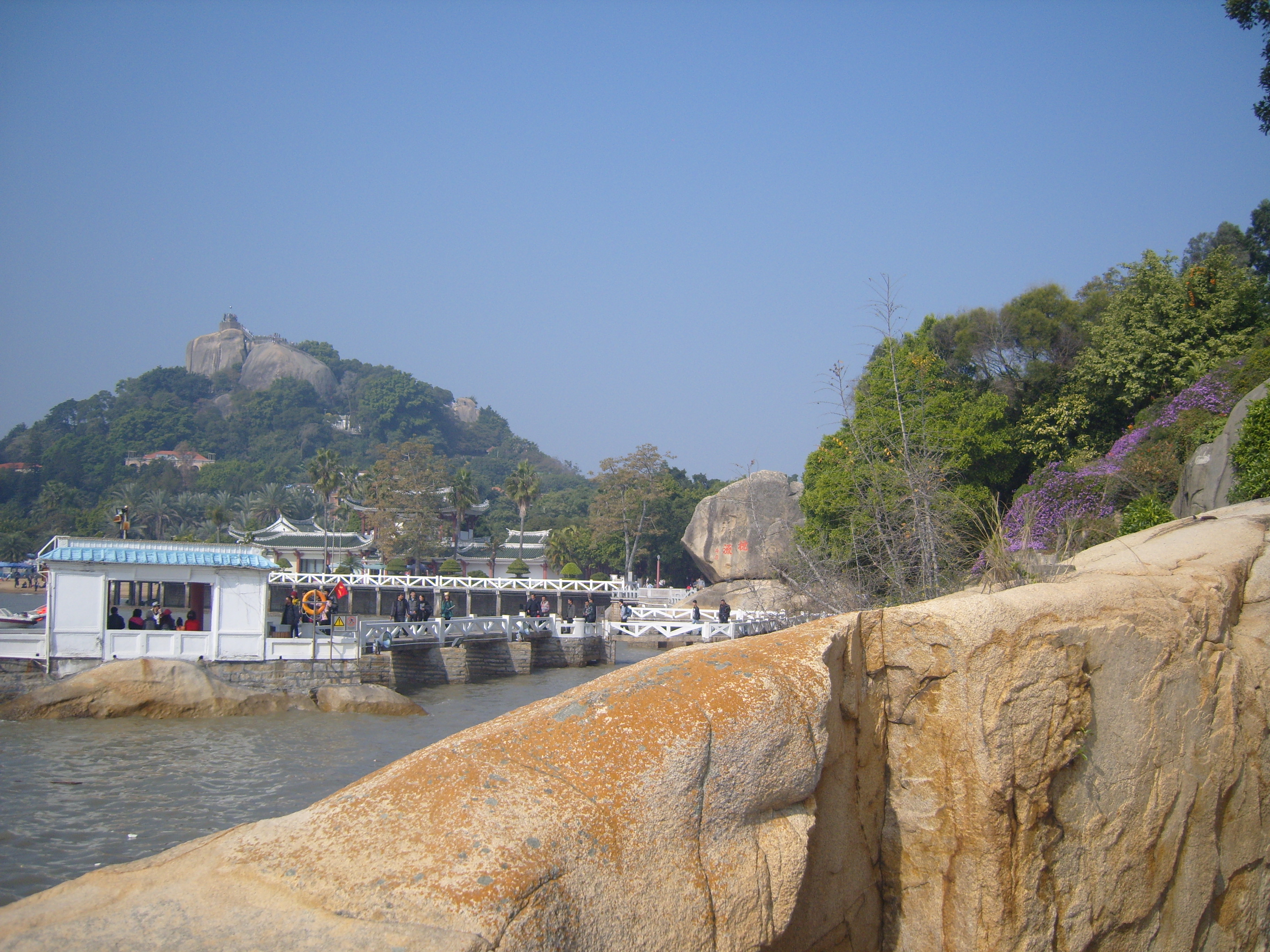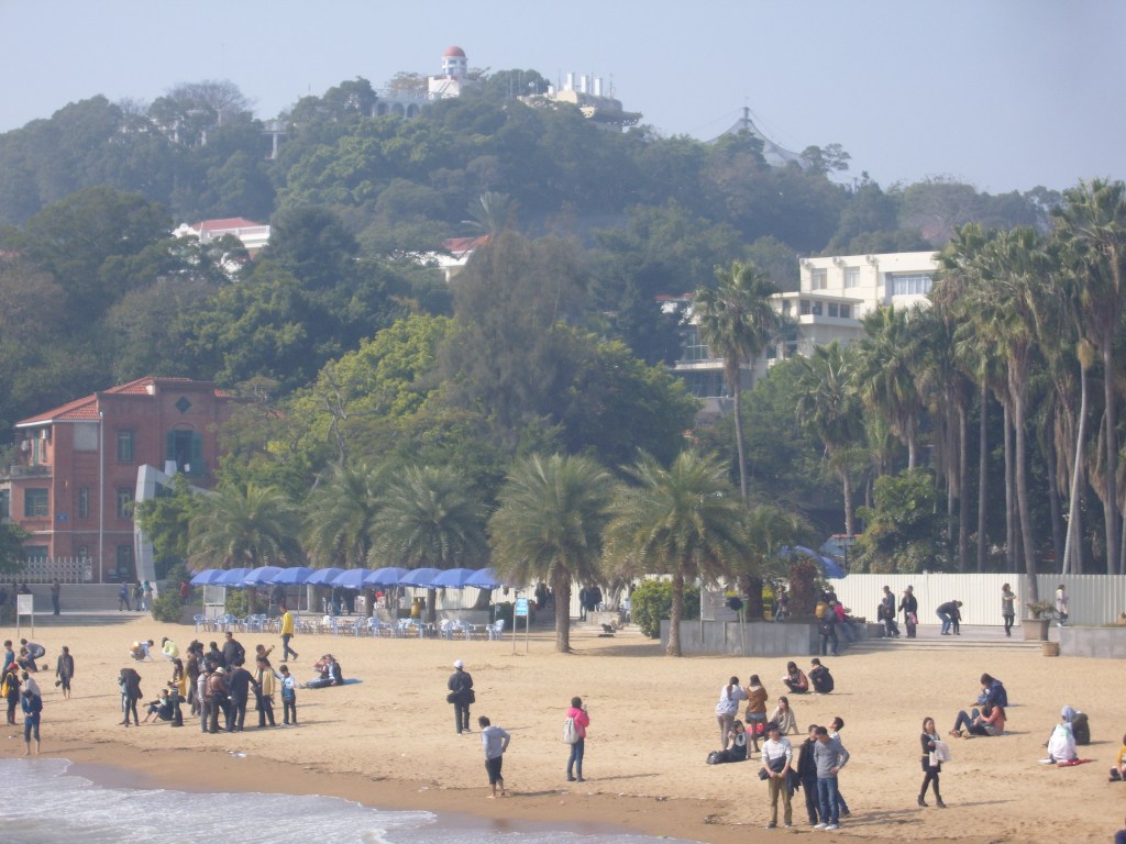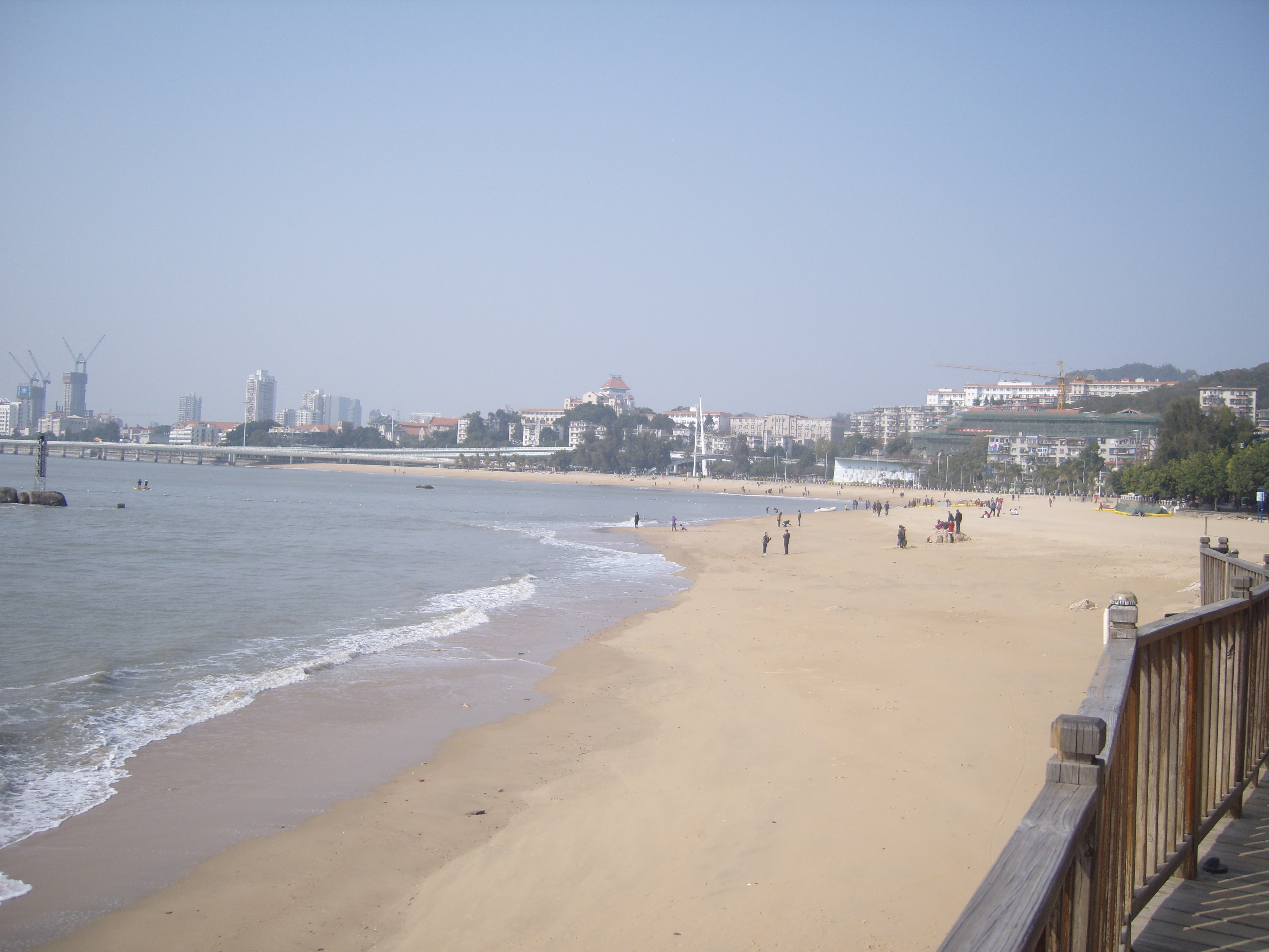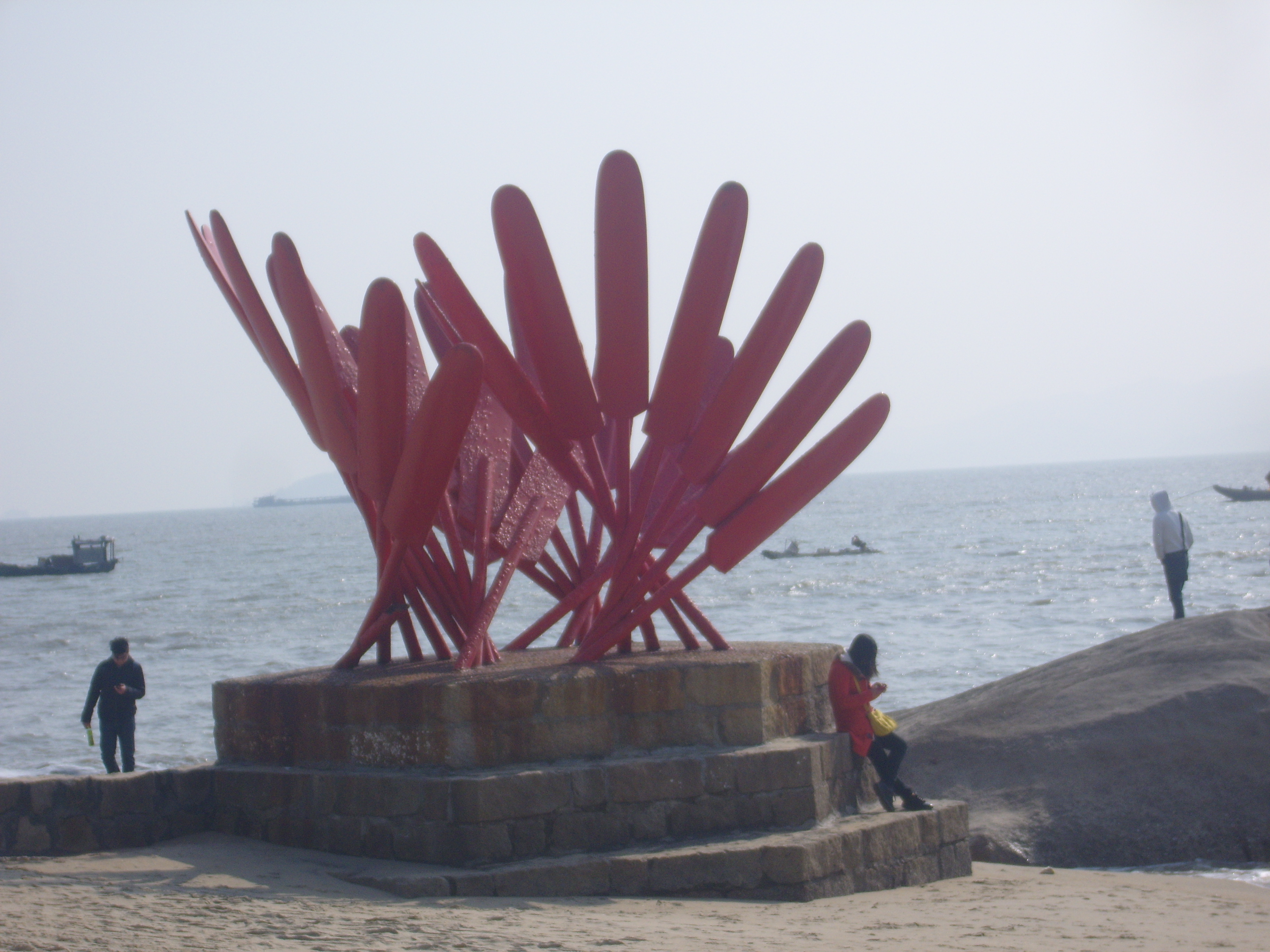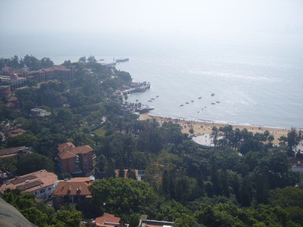 The vegetarian restaurant was a bit of a disappointment after those I had visited in Chengdu. One dish with mushrooms was particularly chewy. The beach I walked along was called Hulishan beach, after an old fortress (Hulishan fortress 胡里山炮台) just about visible from the beach (it was screened by trees), a concrete defensive outpost on the southern coast of Xiamen, just across the water from the historically contentious Kinmen Islands. It was closed to the public on the day of my visit.