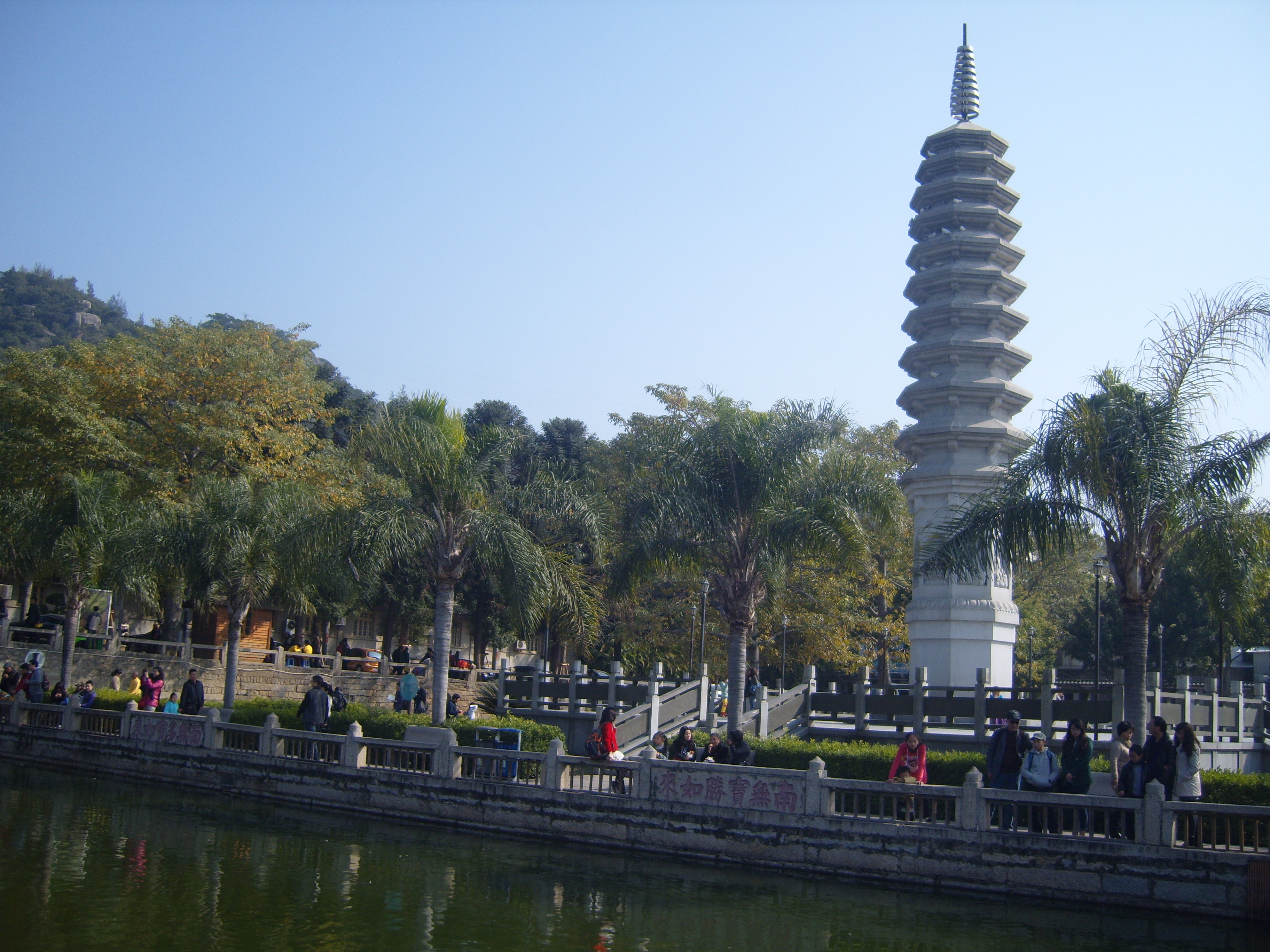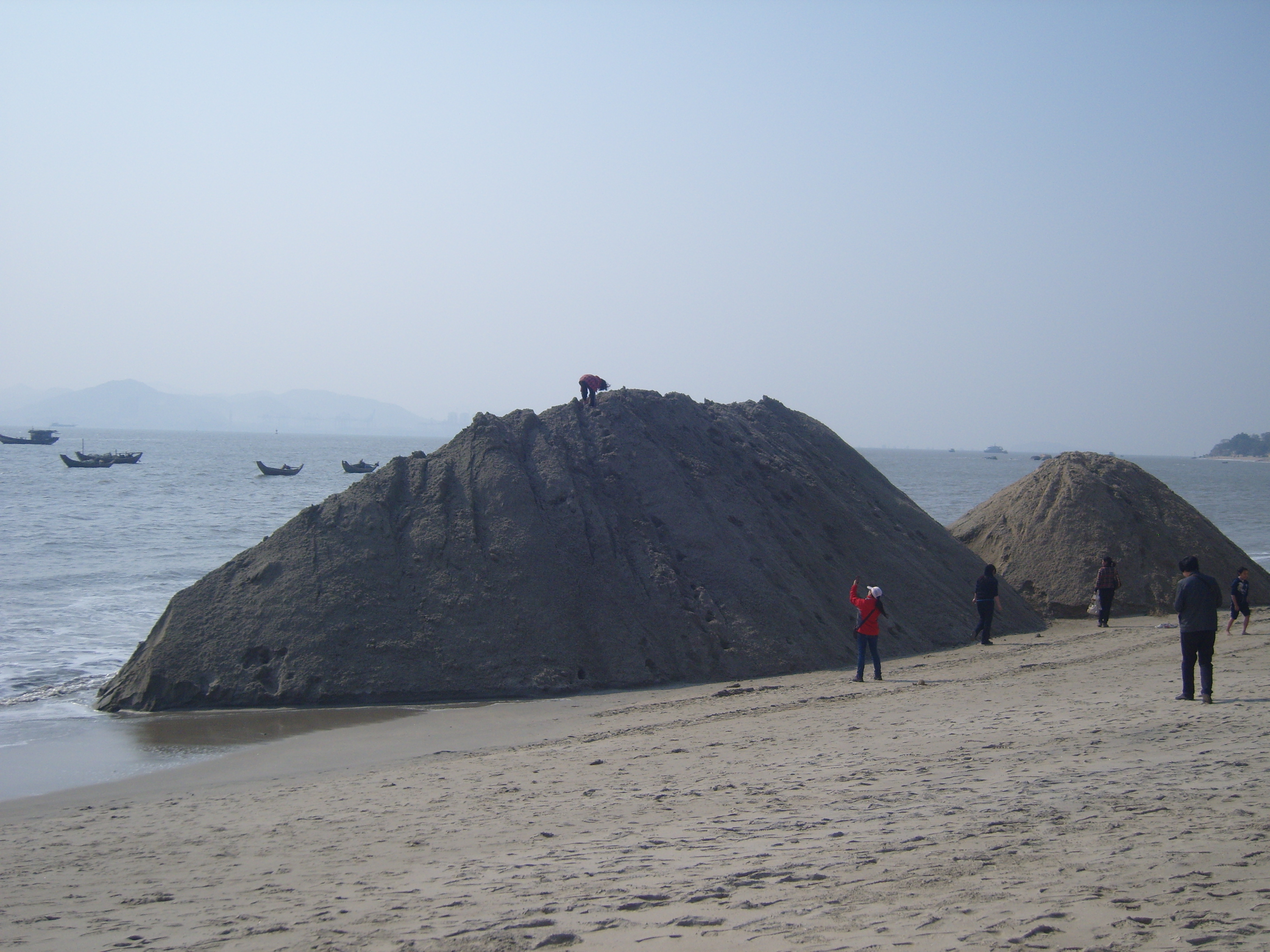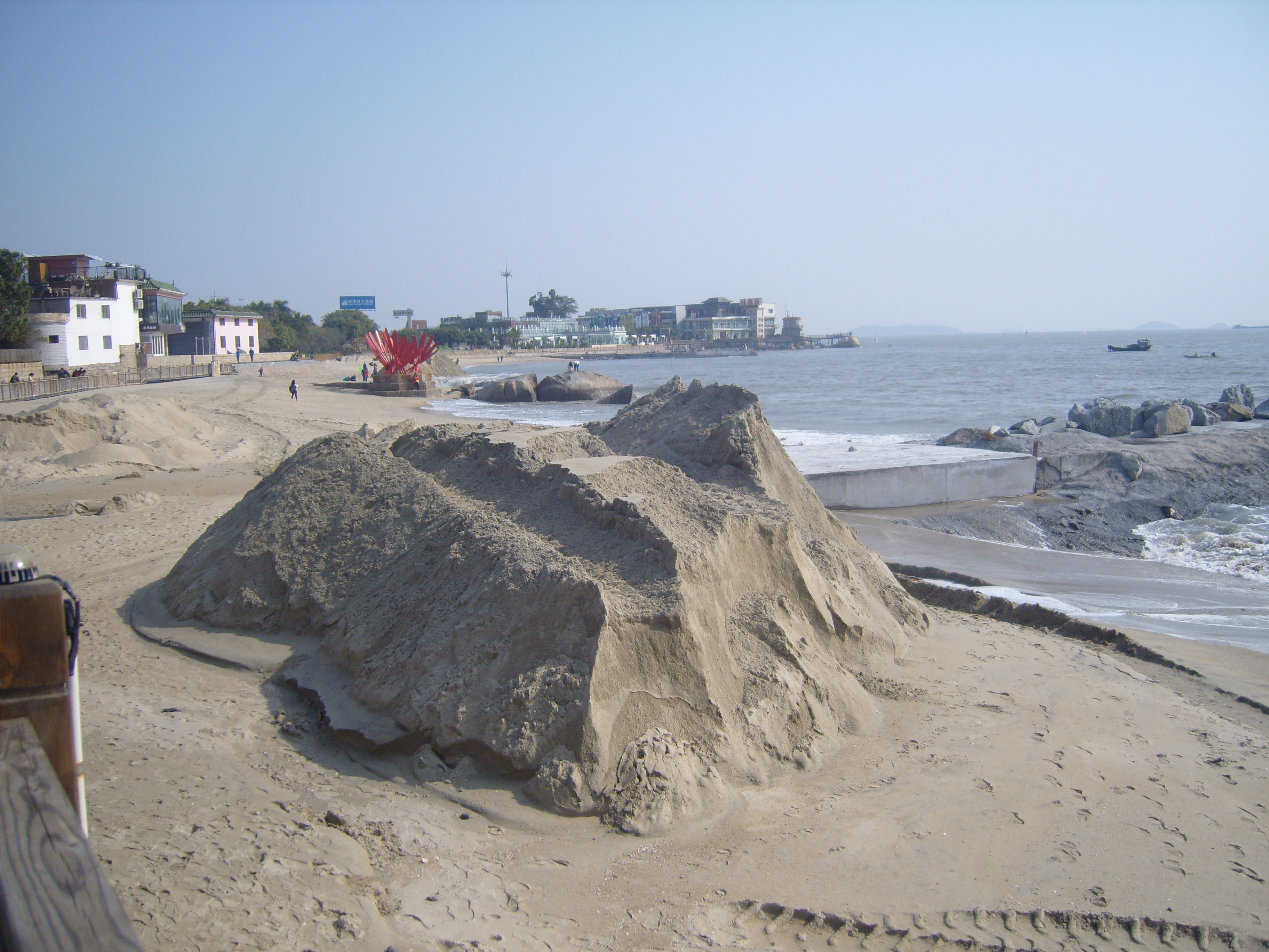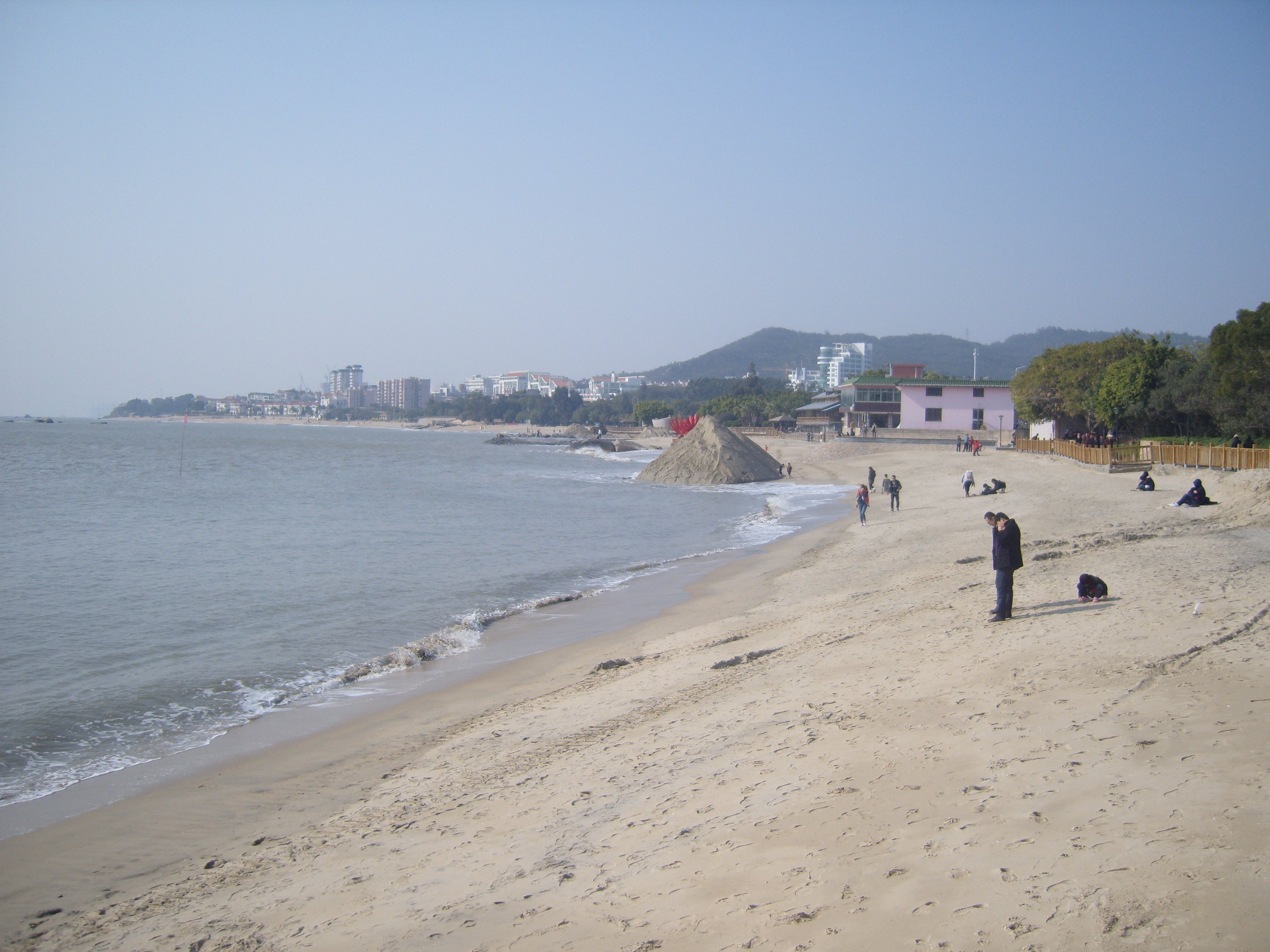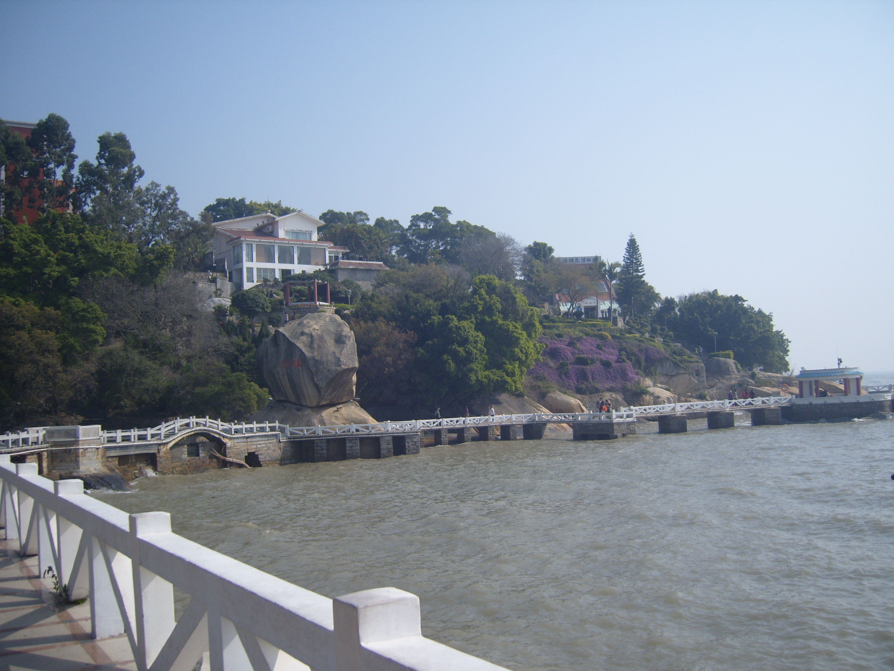 The vegetarian restaurant was a bit of a disappointment after those I had visited in Chengdu. One dish with mushrooms was particularly chewy. The beach I walked along was called Hulishan beach, after an old fortress (Hulishan fortress 胡里山炮台) just about visible from the beach (it was screened by trees), a concrete defensive outpost on the southern coast of Xiamen, just across the water from the historically contentious Kinmen Islands. It was closed to the public on the day of my visit.