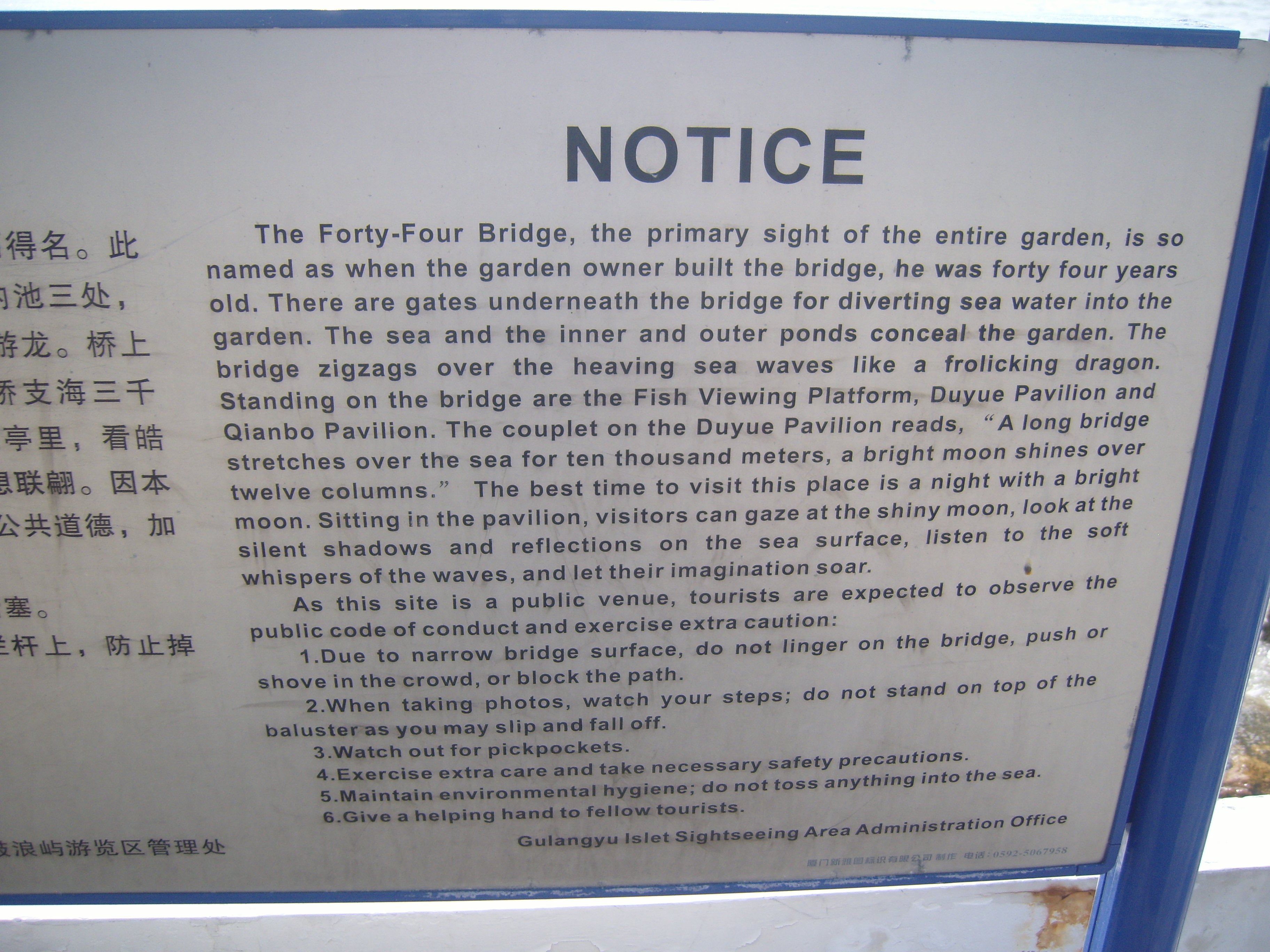 Xiamen is the most desirable destination for foreign teachers in China – so it’s full of Americans, who have the employment market pretty well sown up. It also has more McDonalds and KFCs than anywhere else I’ve ever seen (even in America), usually next door to each other and never more than 100-200 yards apart from the next outlet. In fact, it was hard to find a Chinese restaurant in the centre of the city, unless you count the innumerable seafood stalls. Twice I had to make do with a Japanese chain noodle shop (Ajisen Ramen by name, also a big chain in the USA – surprise!) before I found a – very – small place hidden down a back street near my hotel. Needless to say, it was always packed with locals, who were astonished to see me. There is a widespread assumption in China, and it’s easy to see why in Xiamen, that “foreigner” = “American”. Having said that, Xiamen is really a very decent place, with the best weather in China; it is the ‘city of eternal Spring’, say the Chinese.