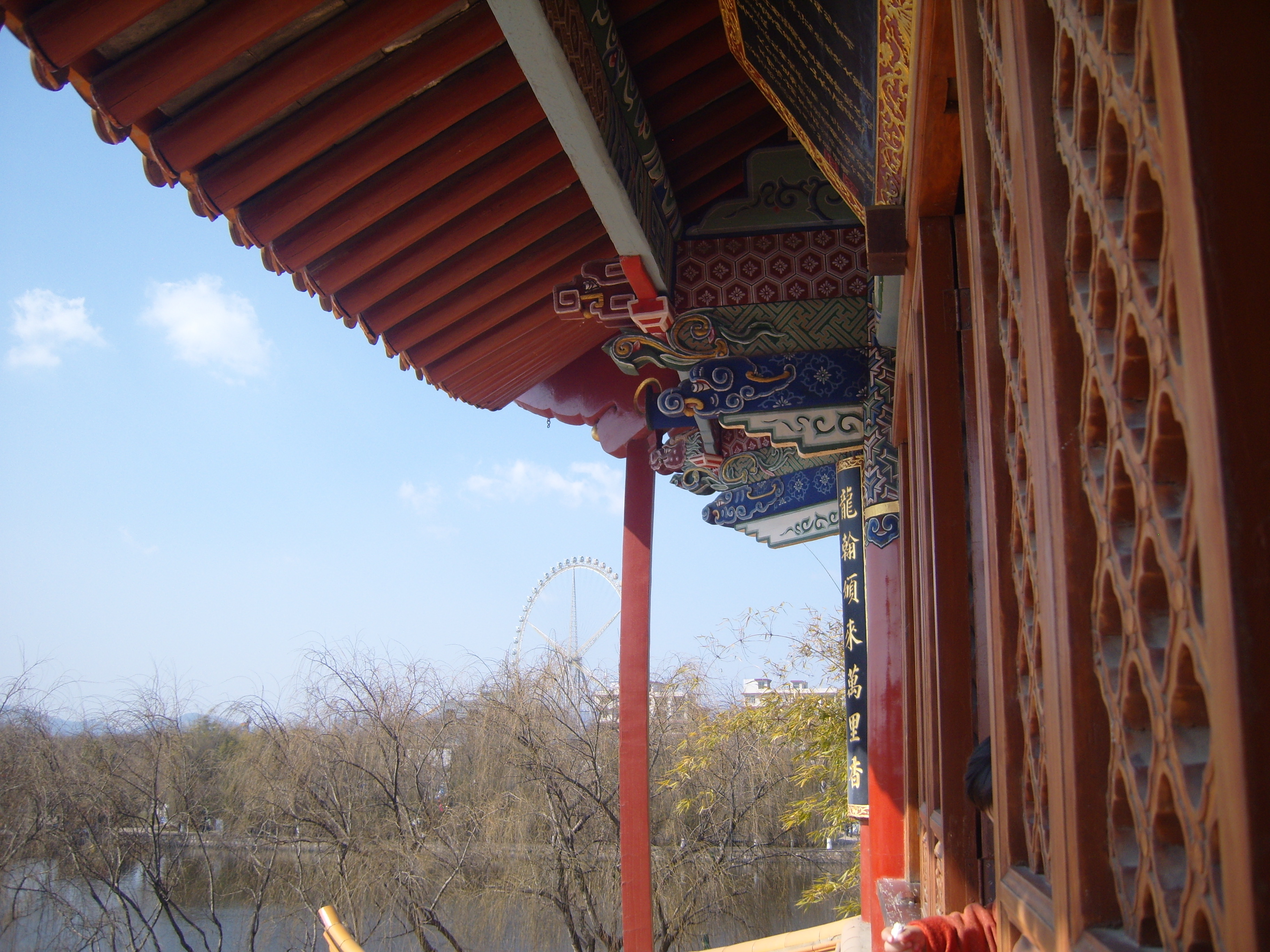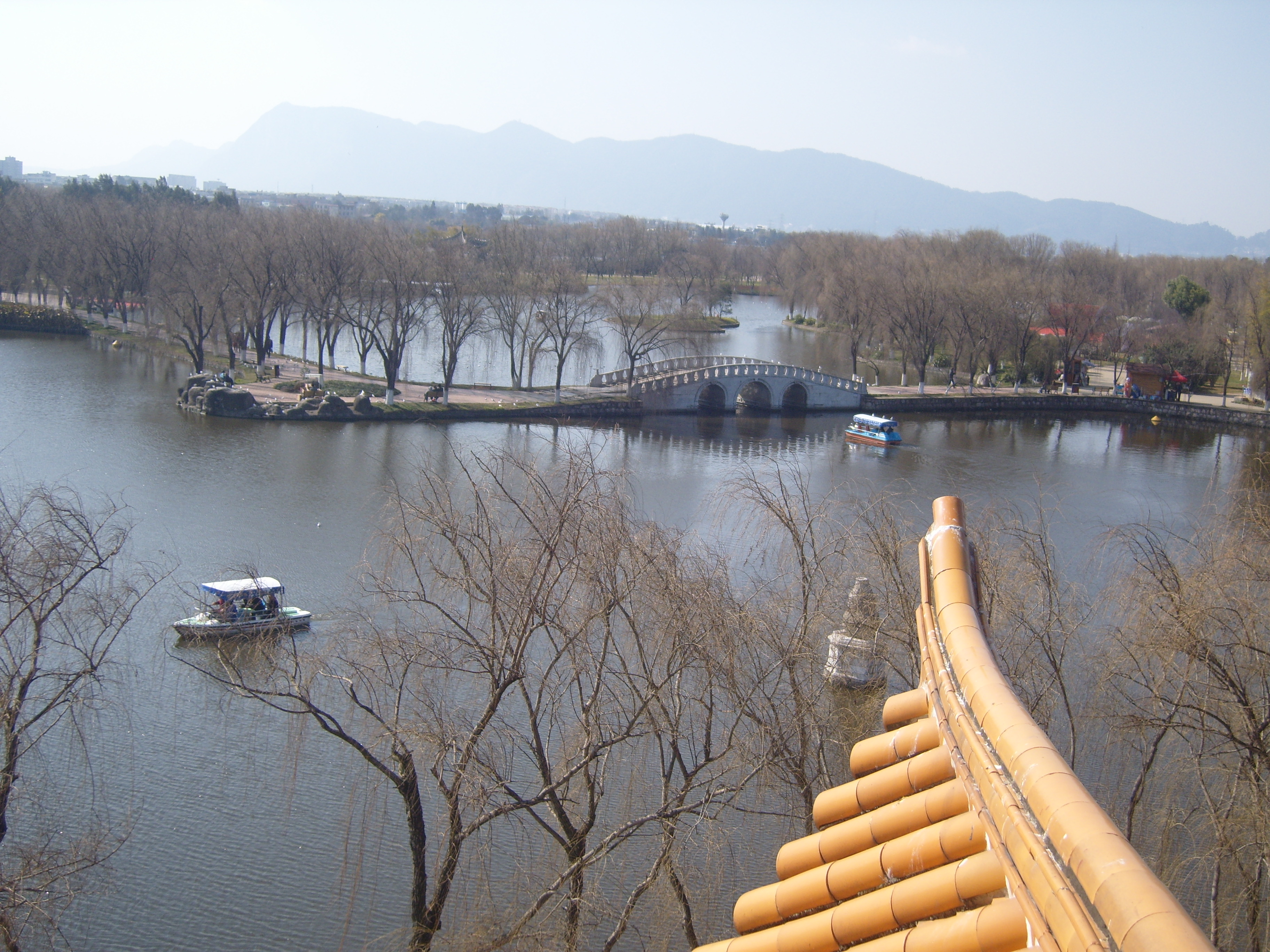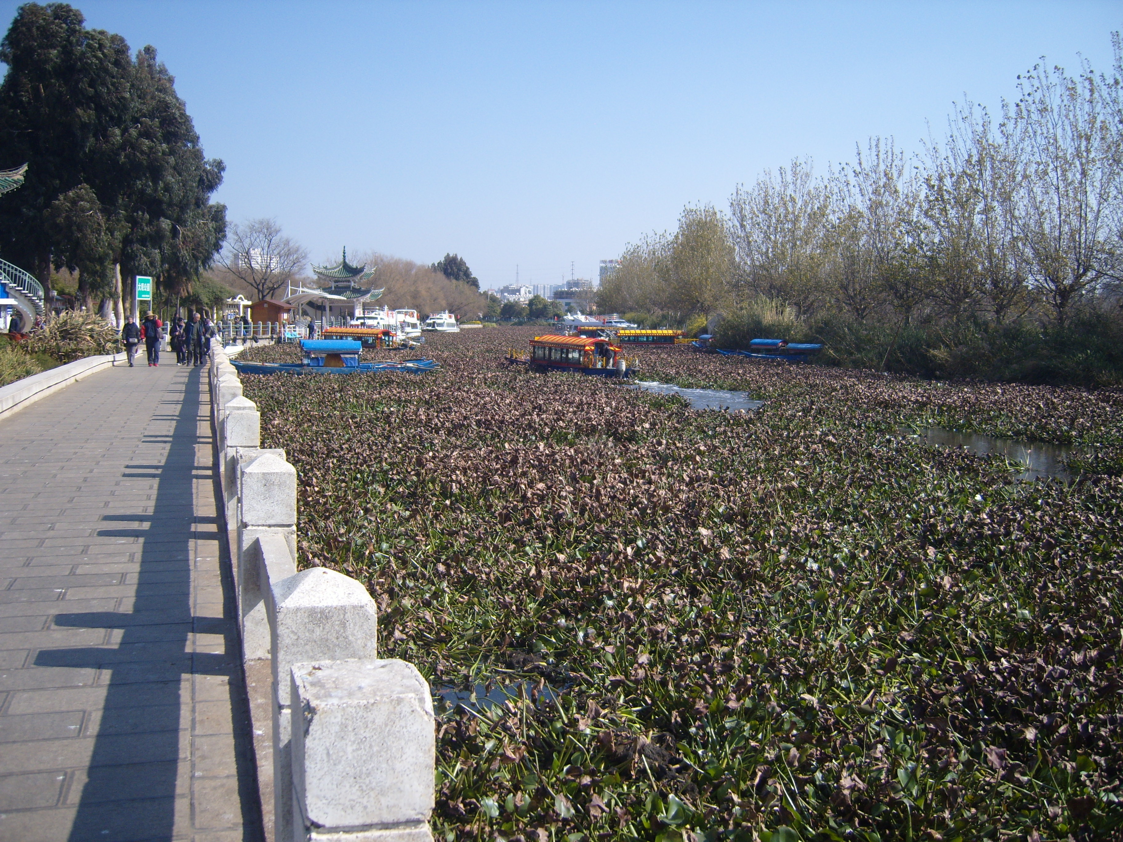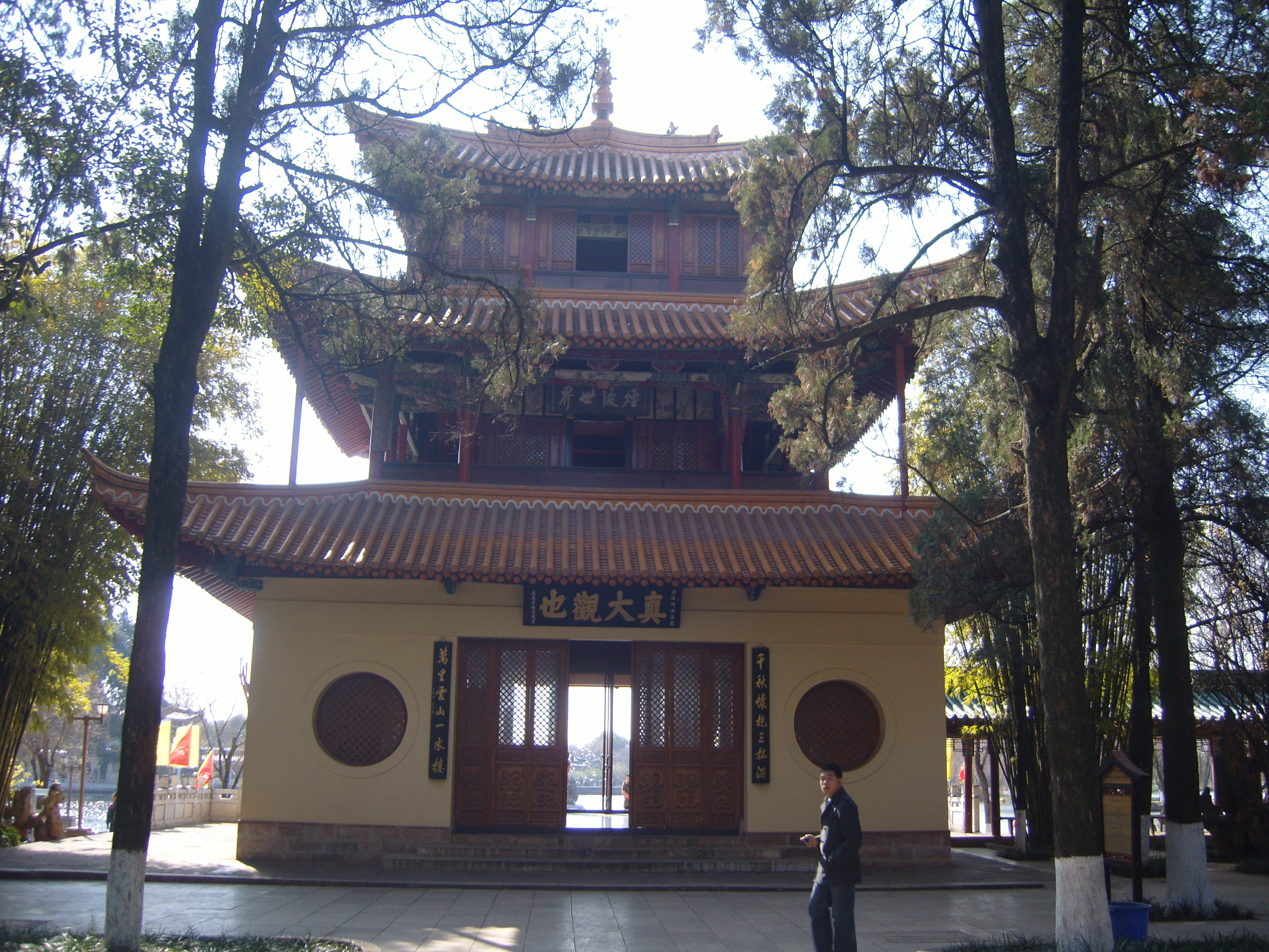 On my second day in Kunming I took a bus southwest across town (it took ages) to an open space marked on the map, because it was an open space marked on the map, so not totally built-up, like everywhere else on the map. This turned out to be a very good idea, and I spent a few hours in winter sunshine enjoying what the locals enjoyed in the winter sunshine: 大观公园; (in traditional Chinese 大觀公園) Dàguān Gōngyuán – Daguan means “Grand View”.