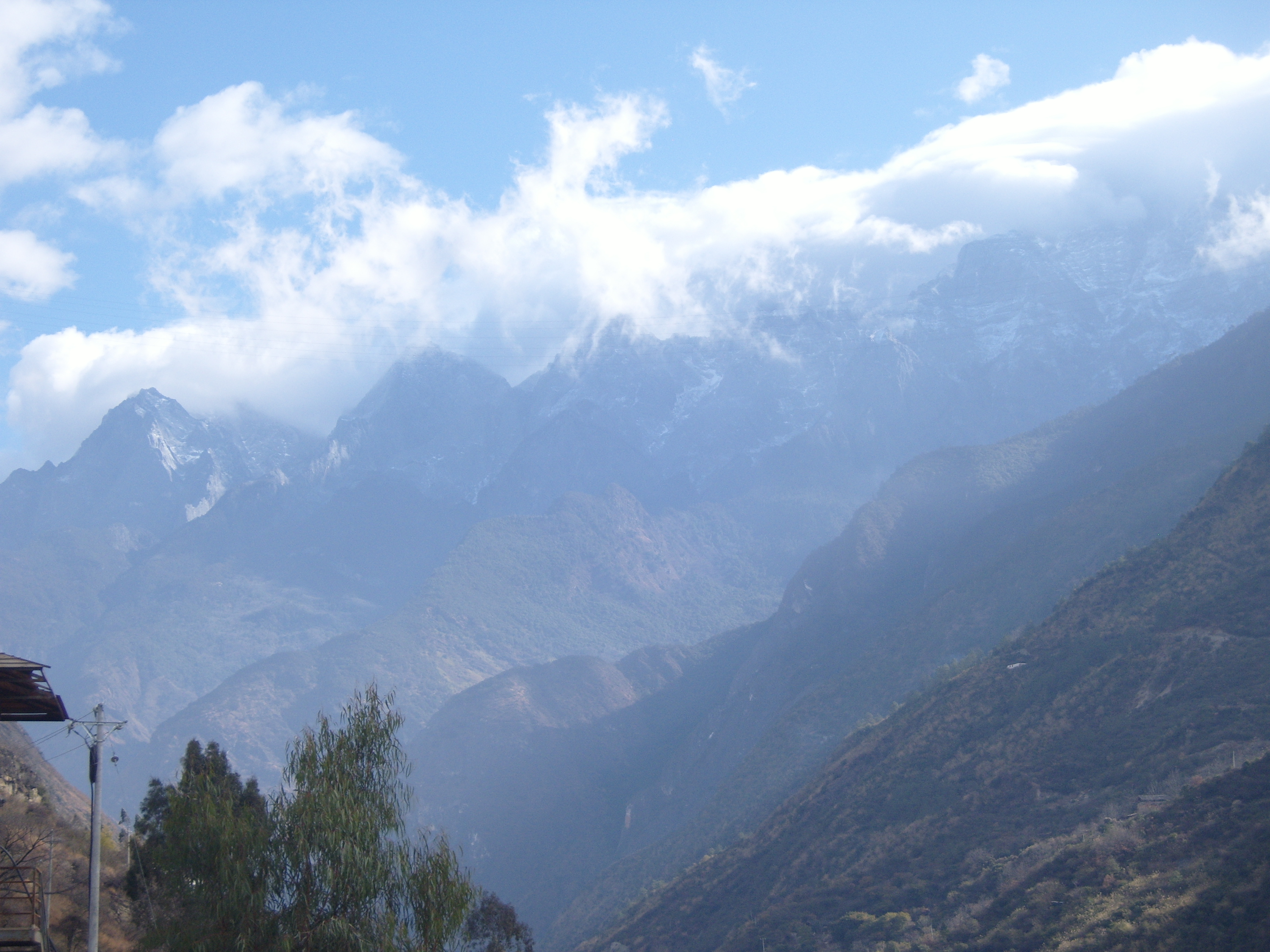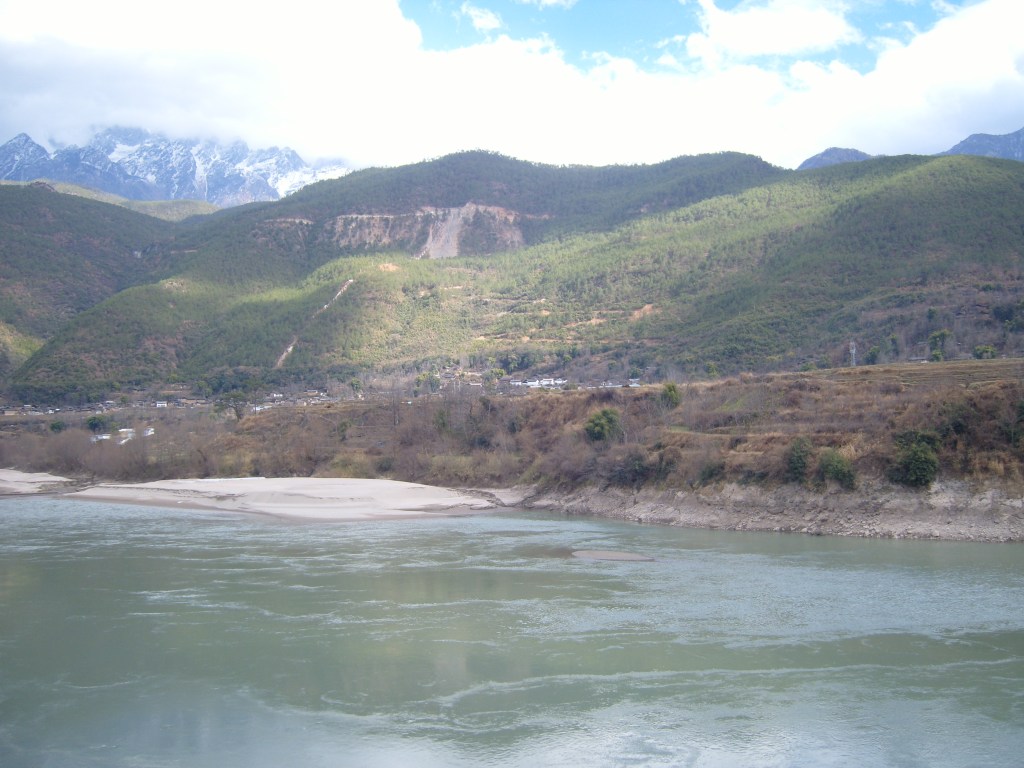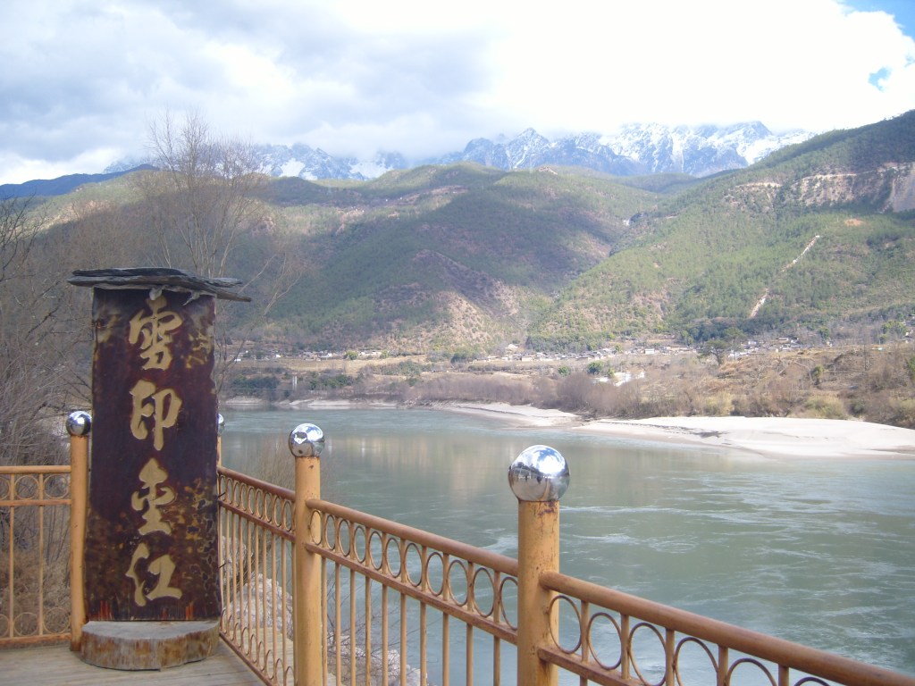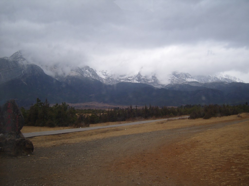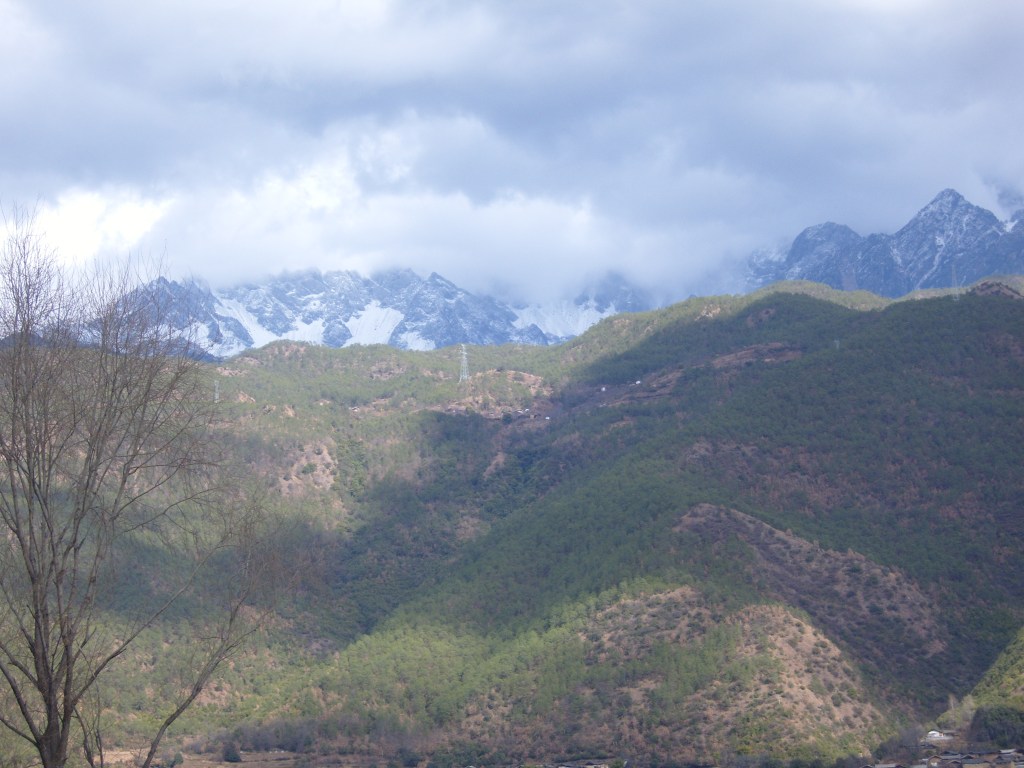 As the picture below shows, it’s a lot more impressive on a clear sunny day. In the background are the Jade Dragon Snow Mountains (玉龙雪山), a small group of peaks about 30 kilometers north of Lijiang.
