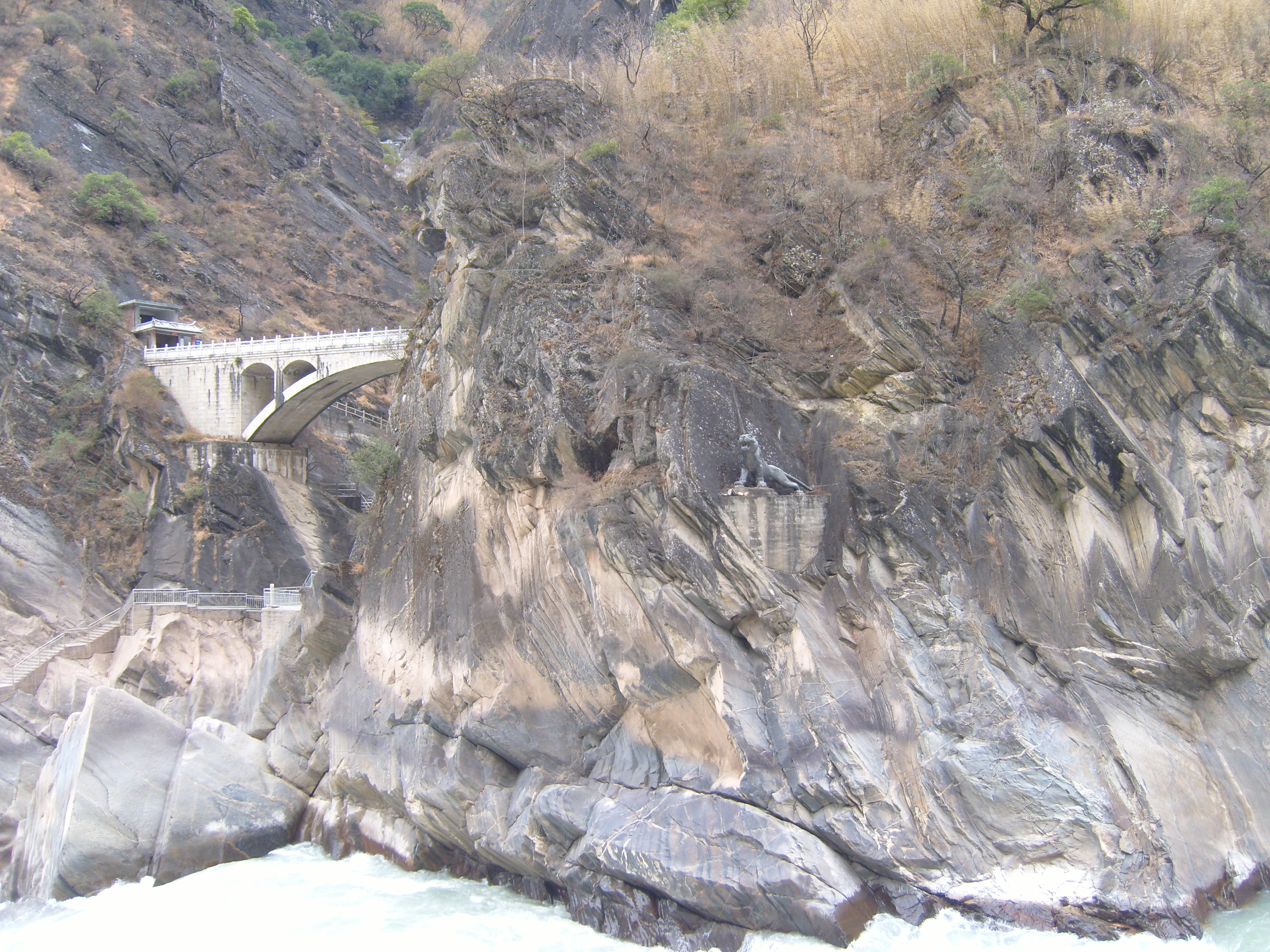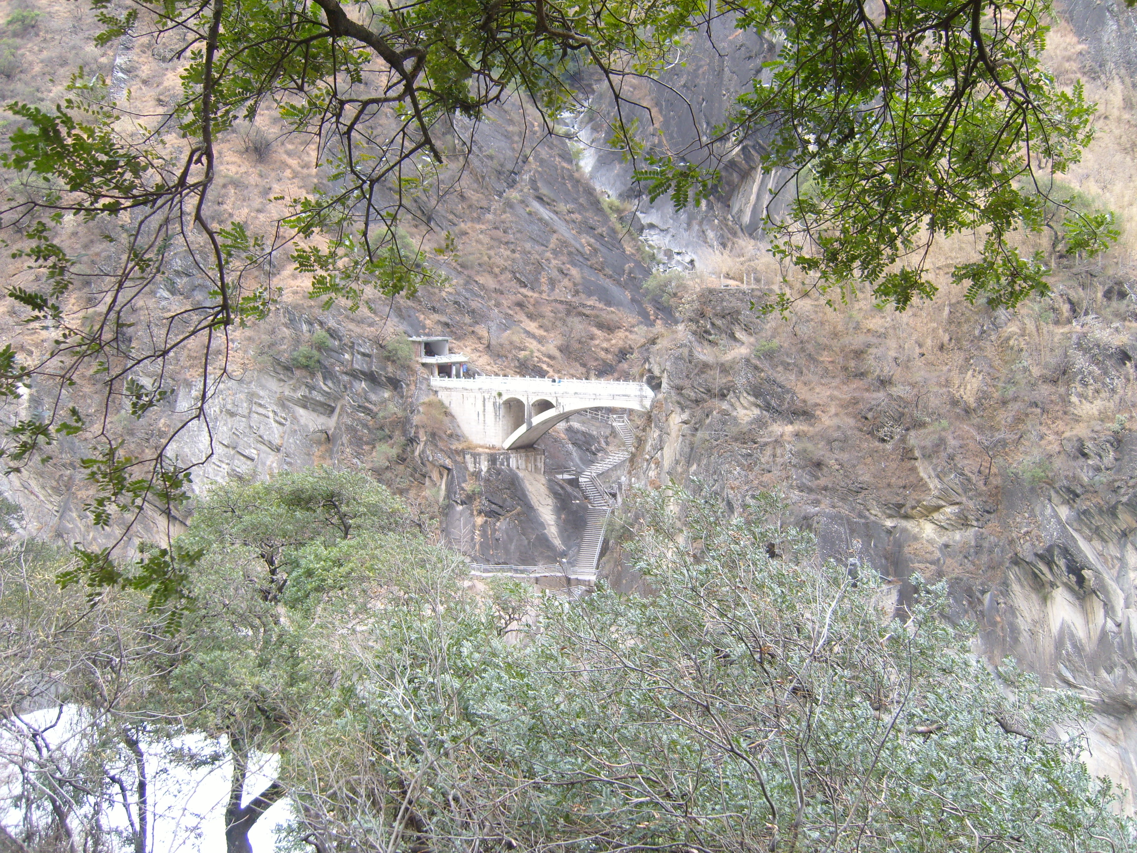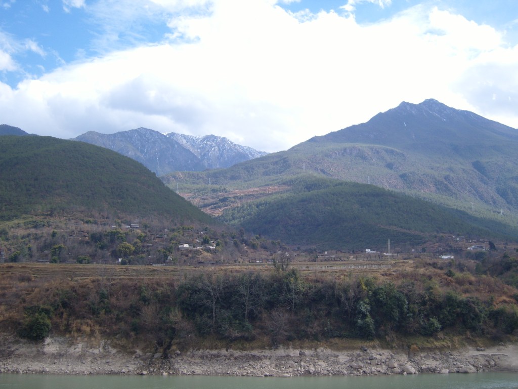 As the picture below shows, it’s a lot more impressive on a clear sunny day. In the background are the Jade Dragon Snow Mountains (玉龙雪山), a small group of peaks about 30 kilometers north of Lijiang.