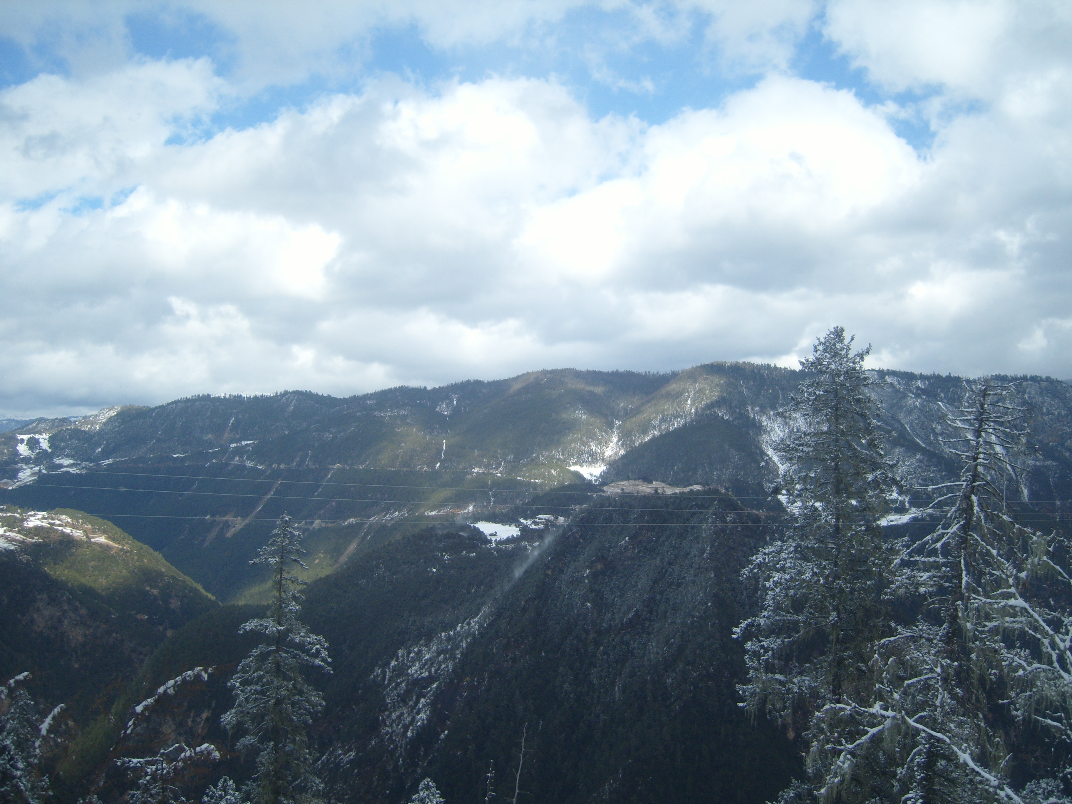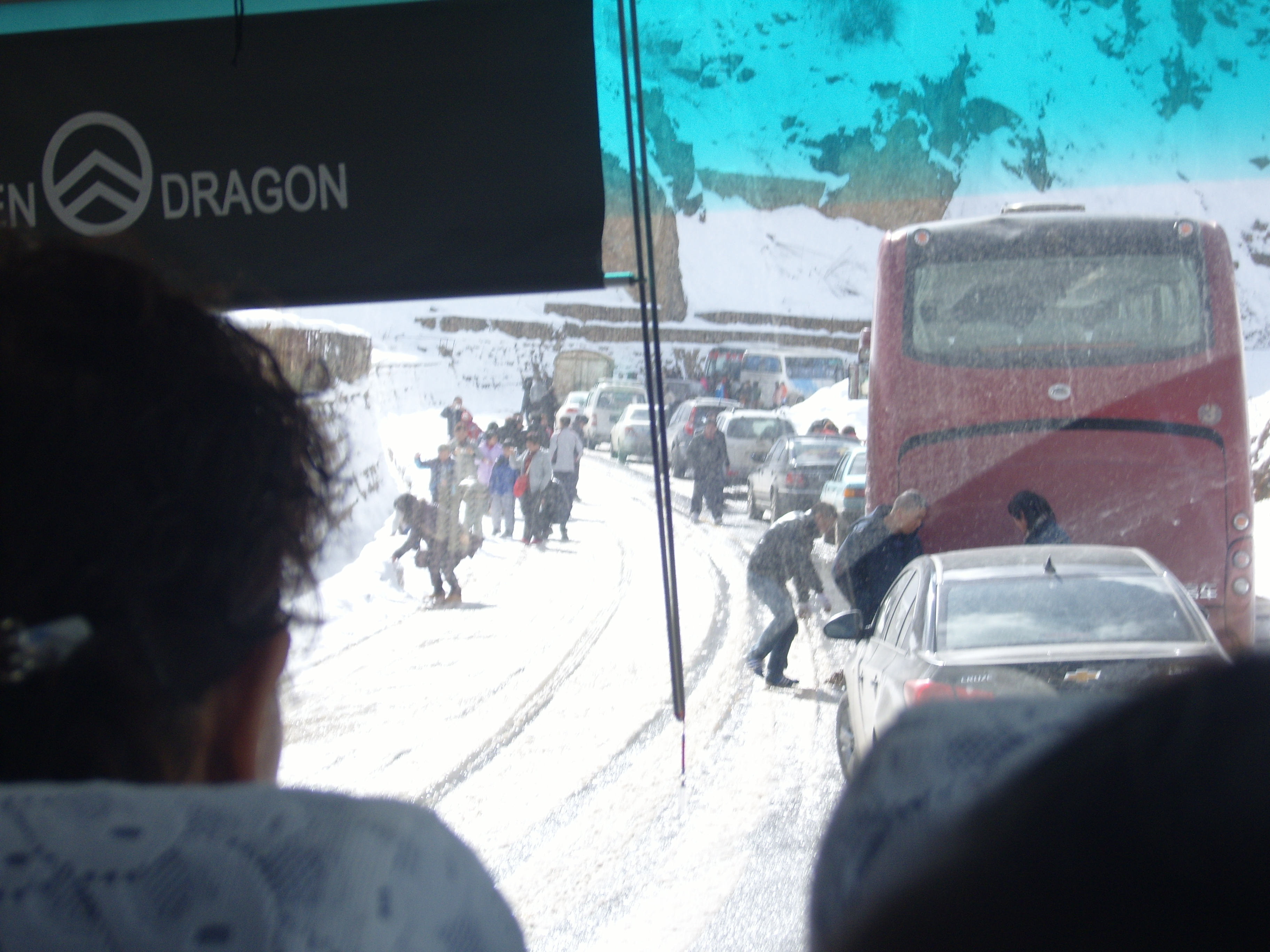 There were several dodgy moments during the trip; almost getting snowed in on the bus on the climb upwards (the road almost became impassable, with traffic on its way down building up and blocking the road, as Chinese drivers like to do – I suppose patience as a virtue must have been one of the “olds” rejected by the Red Guards, and never reinstated); I caught a very bad chill with a fever during the evening, and so missed out on a (relatively expensive) dinner including a performance by local dancers (actually, I’m not sure that was a loss – I spent a couple of hours shivering in a hut, where half a dozen bus drivers had their dinner (and at least a hundred cigarettes), which they invited me to share. I had a little, to be friendly, but it was pretty basic and I felt as bad as it tasted); we stayed in another cold hotel; and there was a near whiteout on the way back down the mountain (I don’t think we quite achieved walking speed for the first couple of hours). Still, at least I can say I’ve been, and the views on the way up were pretty spectacular, if kind of static.