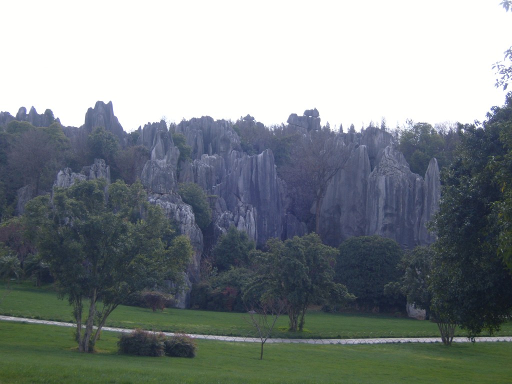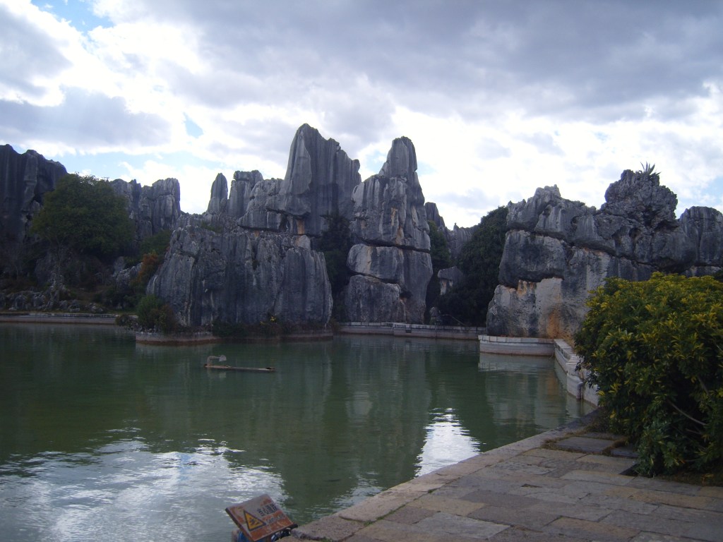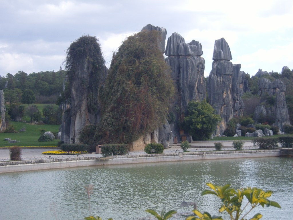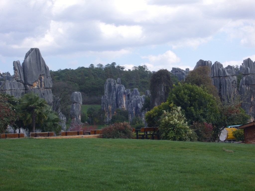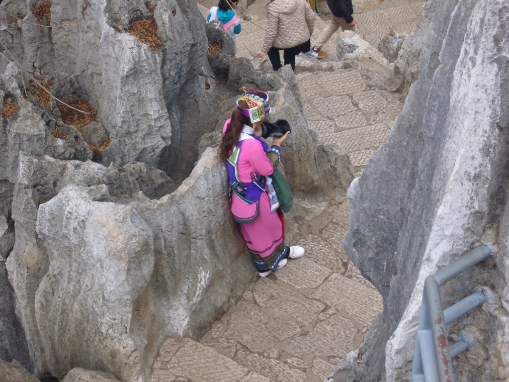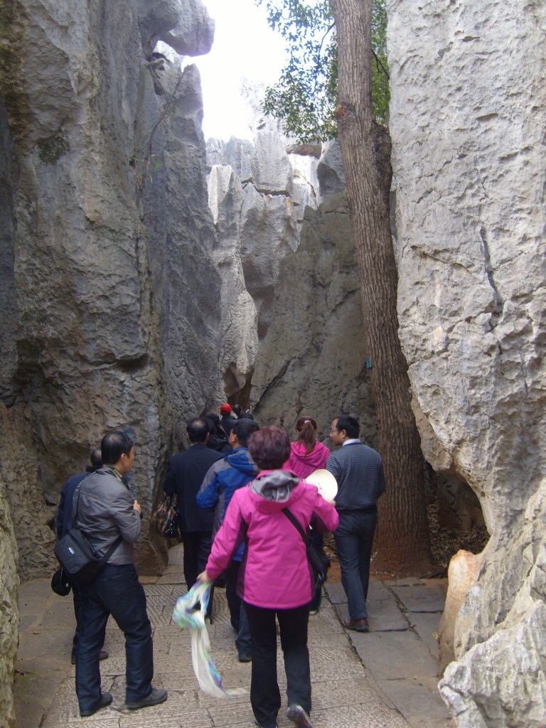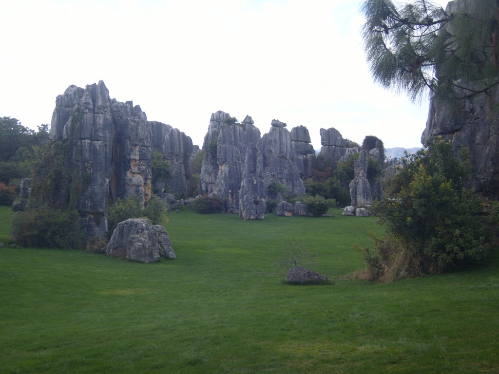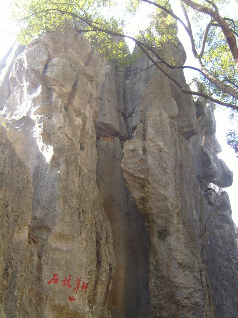 While I was staying in Kunming, I somehow (don’t actually remember how) booked a bus trip to the Stone Forest, a literal translation from Chinese 石林; Shílín. I don’t remember the bus trip at all, but it was definitely better to arrive than travel hopefully and visit the usual tourist tat emporium on the way back.