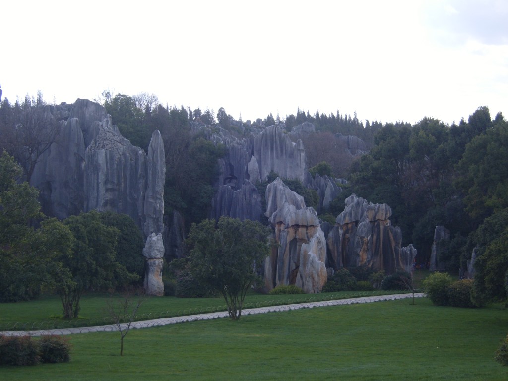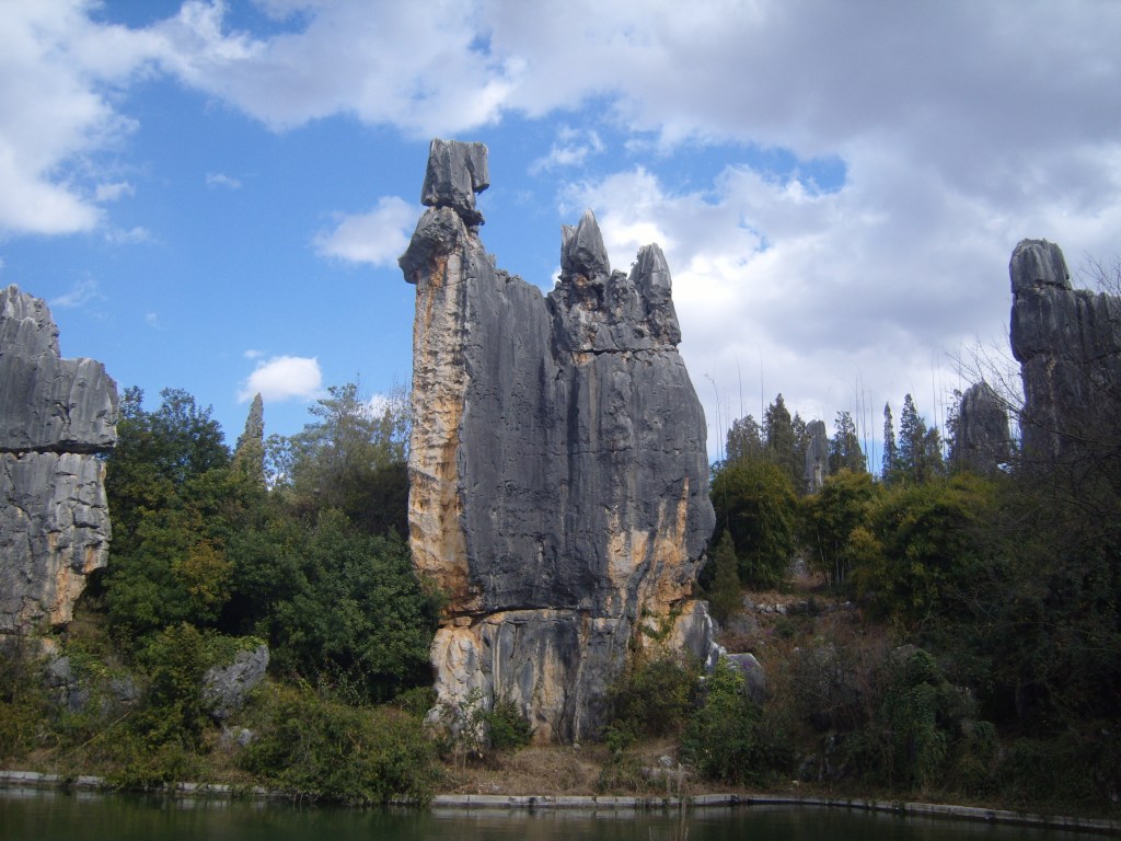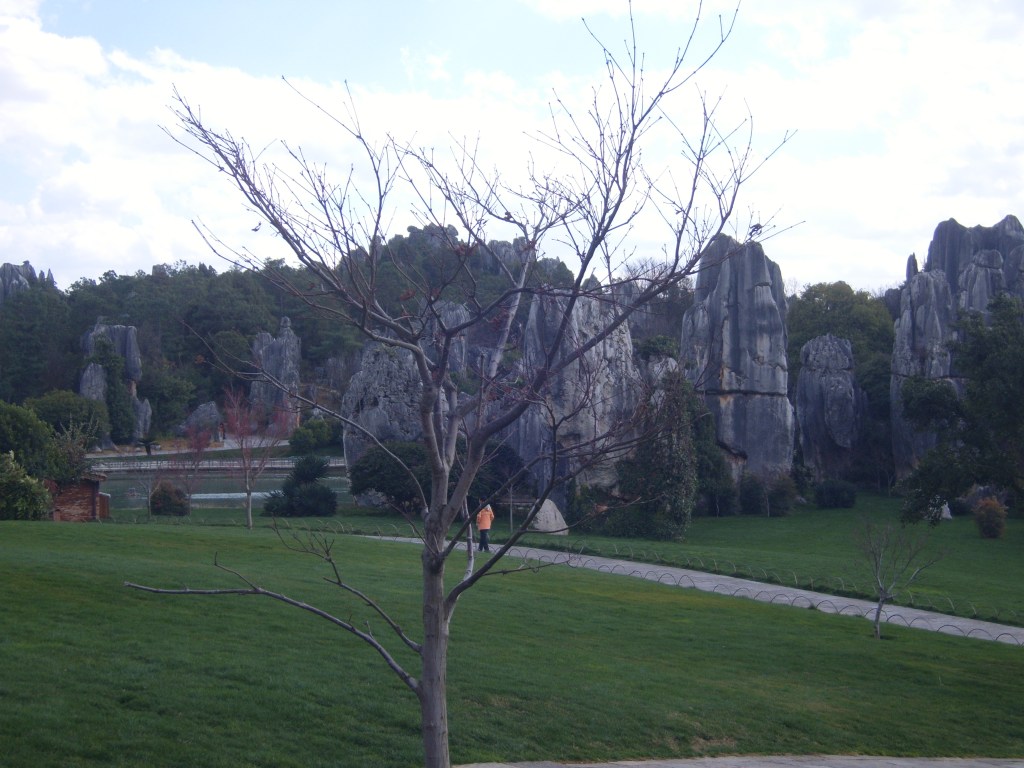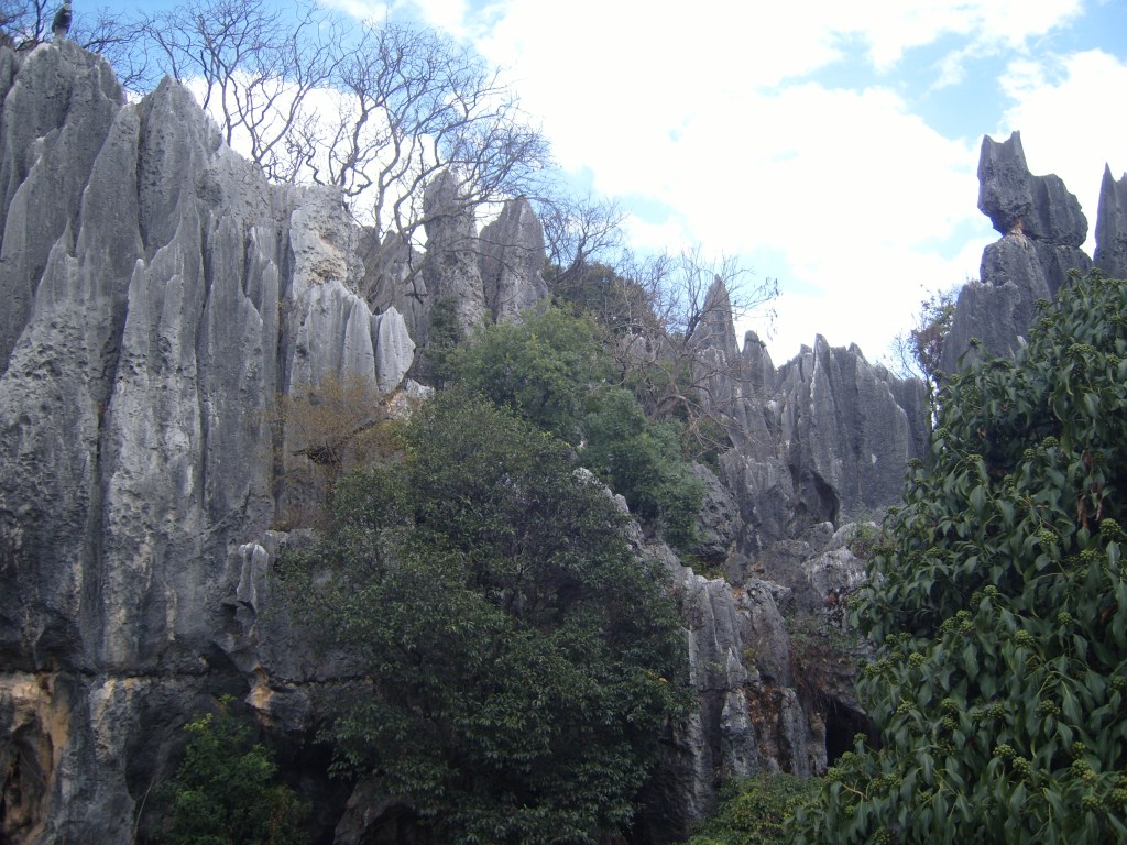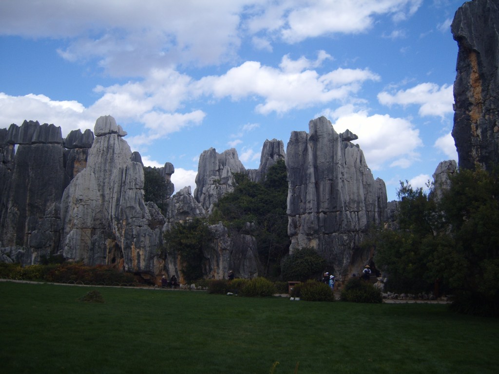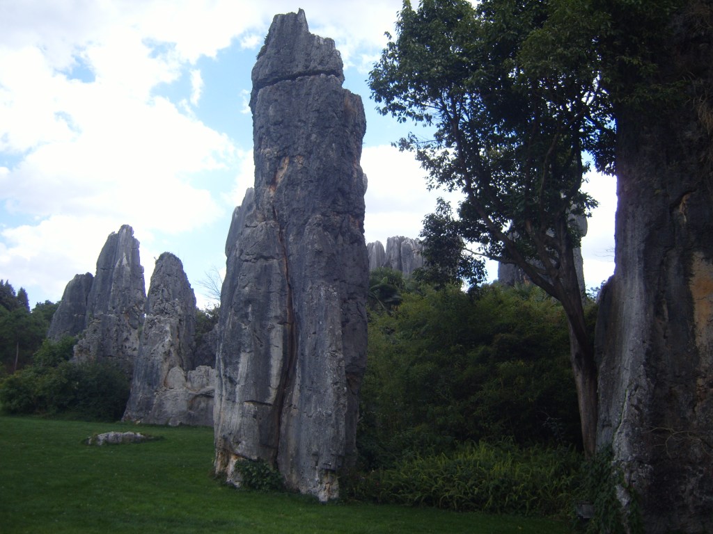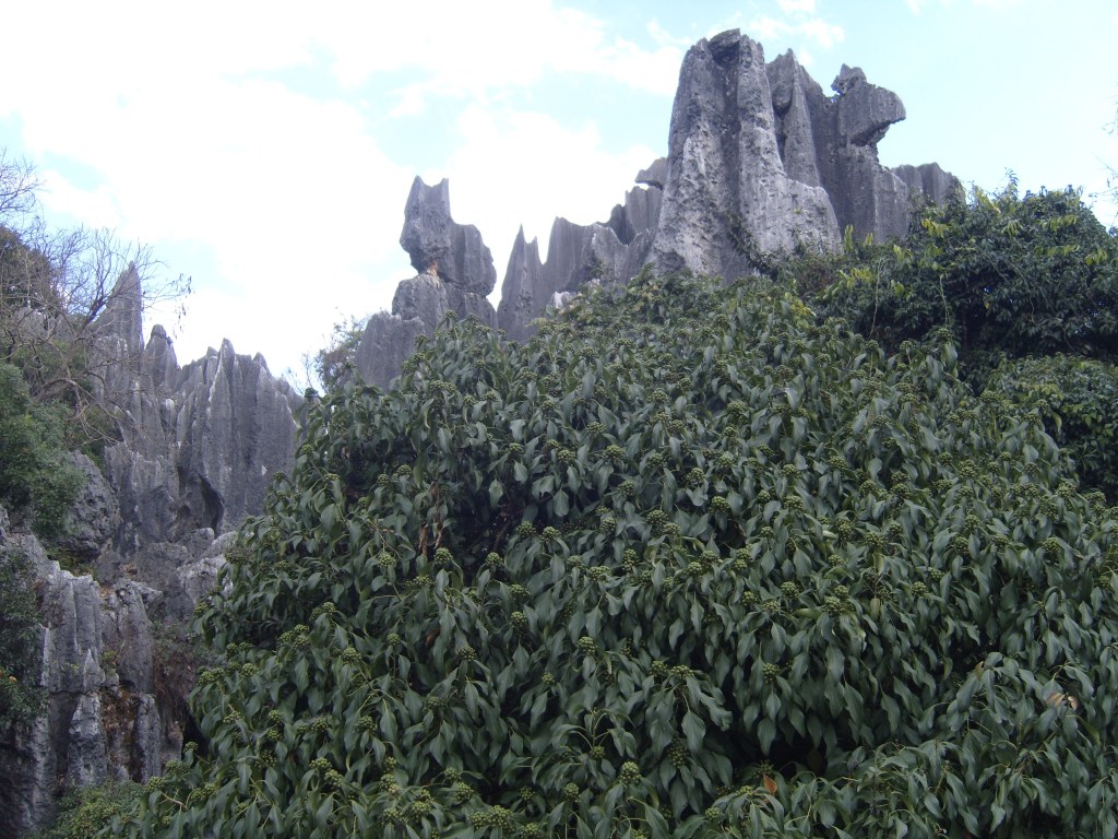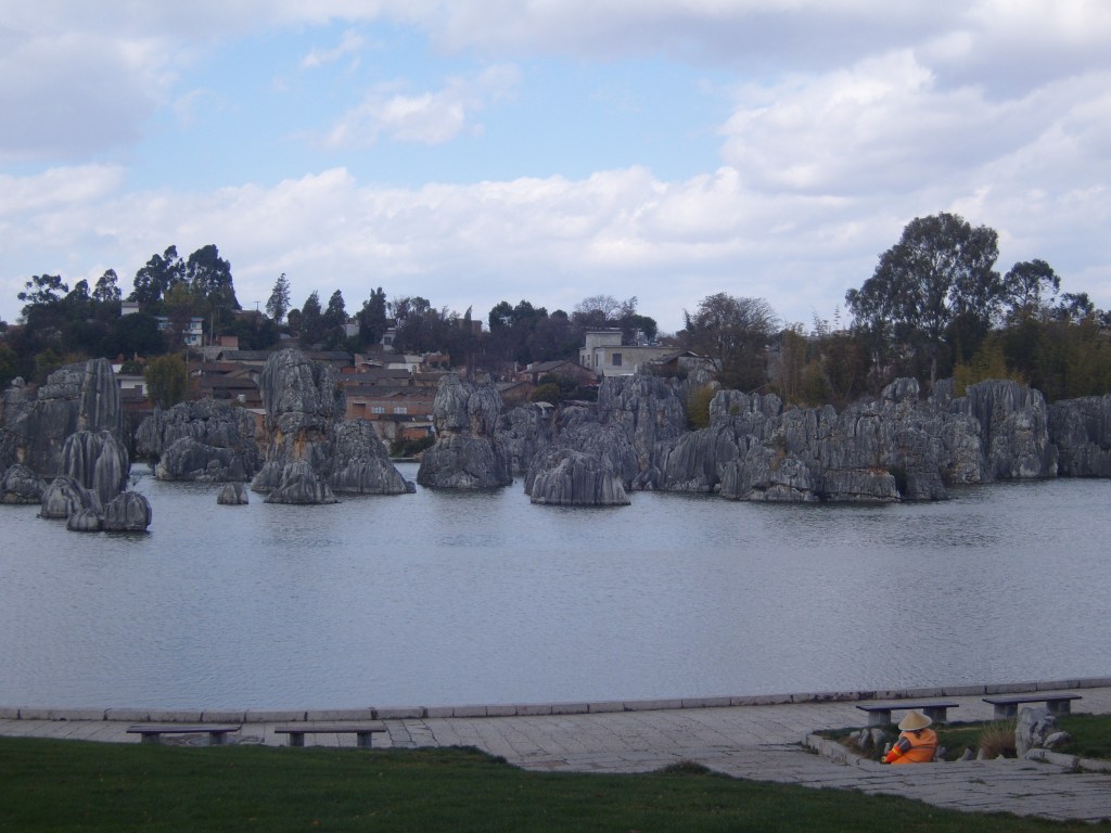 While I was staying in Kunming, I somehow (don’t actually remember how) booked a bus trip to the Stone Forest, a literal translation from Chinese 石林; Shílín. I don’t remember the bus trip at all, but it was definitely better to arrive than travel hopefully and visit the usual tourist tat emporium on the way back.