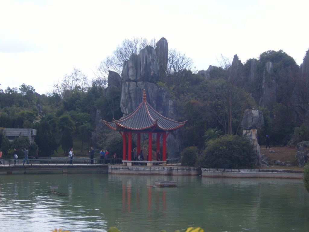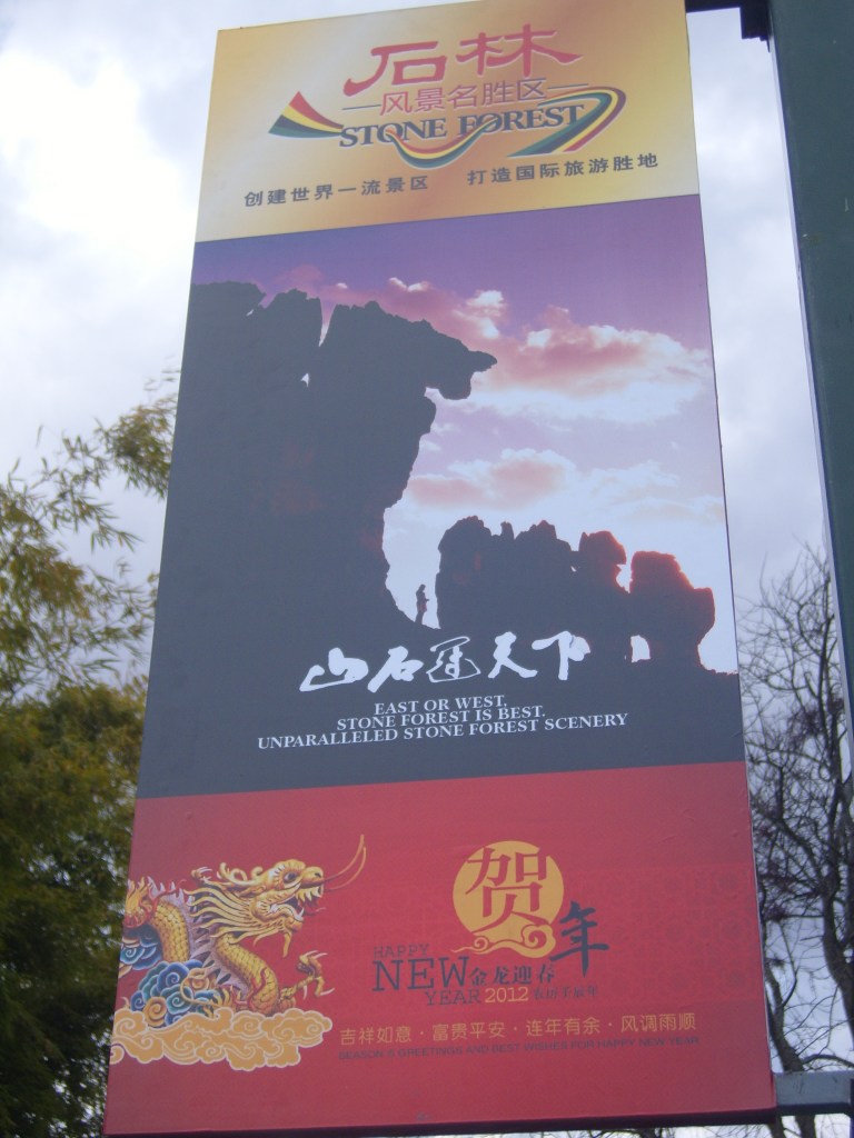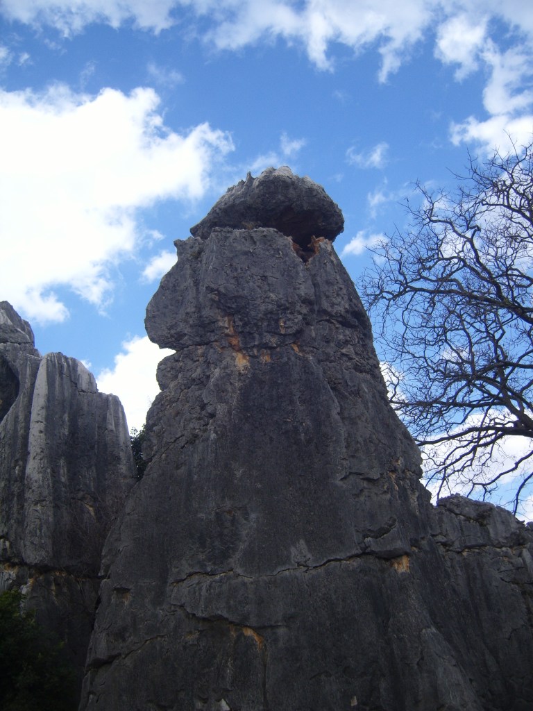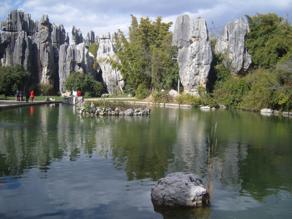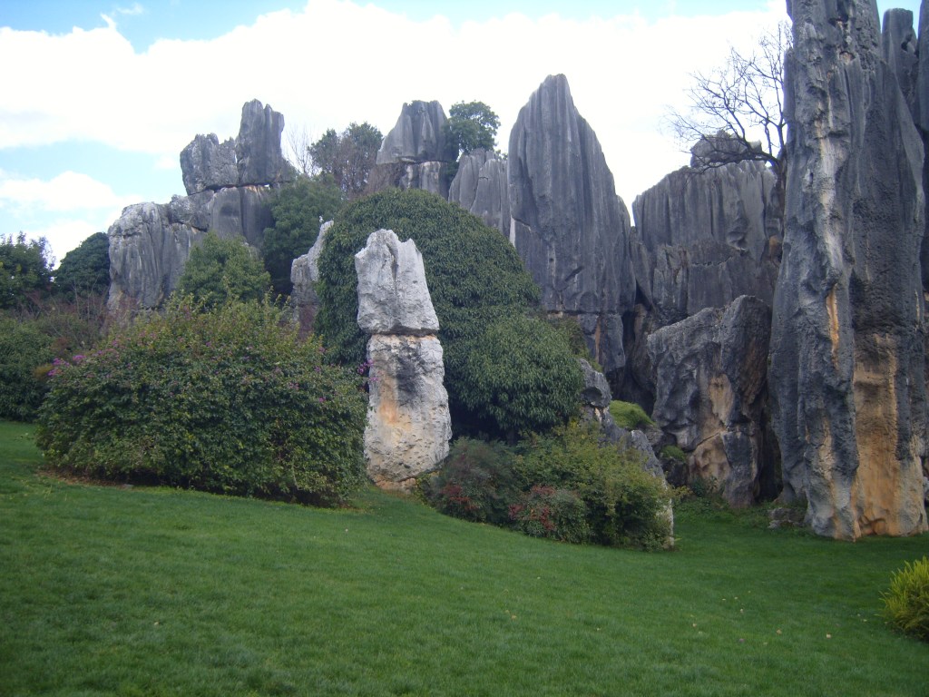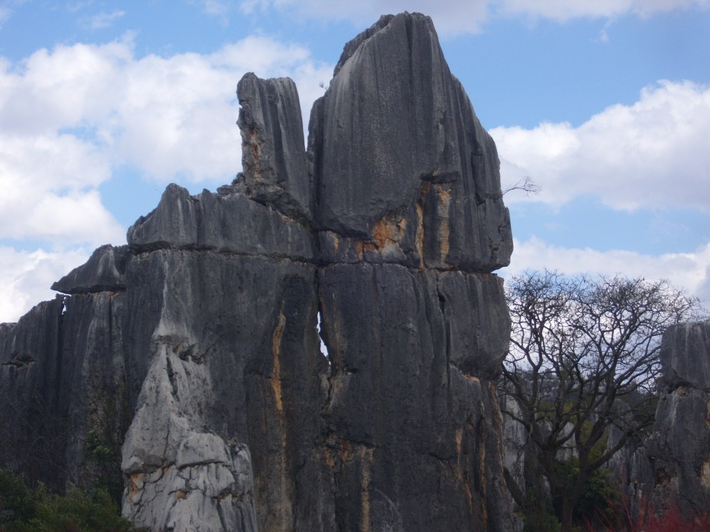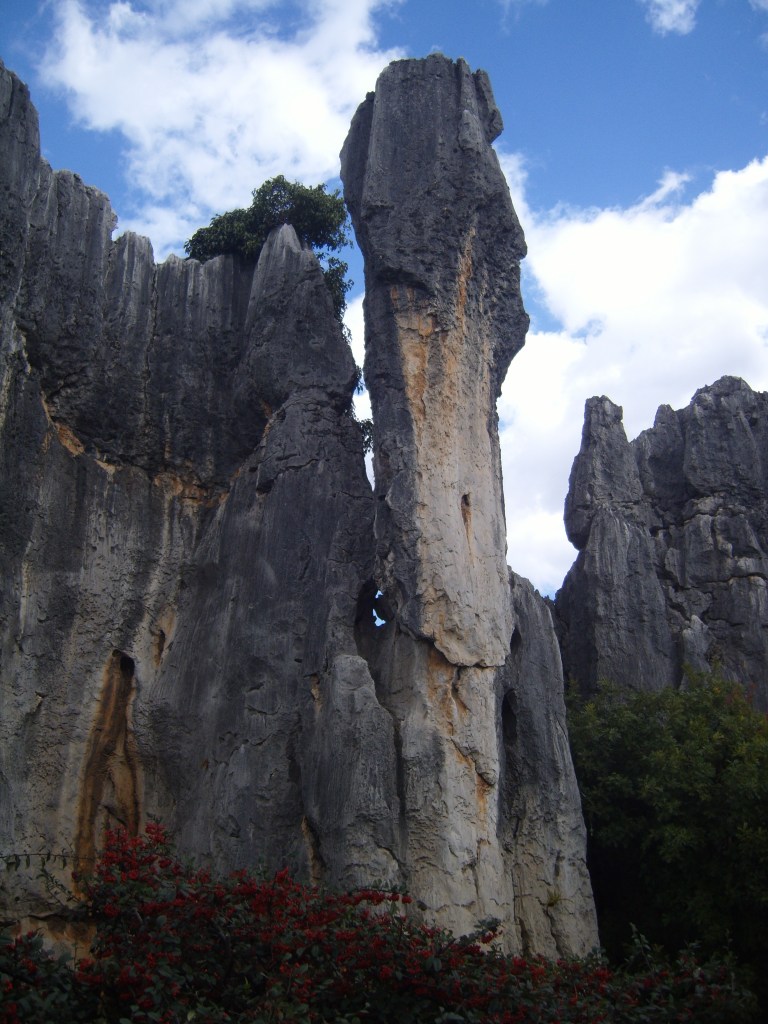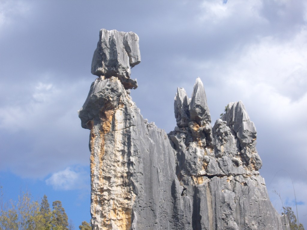 While I was staying in Kunming, I somehow (don’t actually remember how) booked a bus trip to the Stone Forest, a literal translation from Chinese 石林; Shílín. I don’t remember the bus trip at all, but it was definitely better to arrive than travel hopefully and visit the usual tourist tat emporium on the way back.