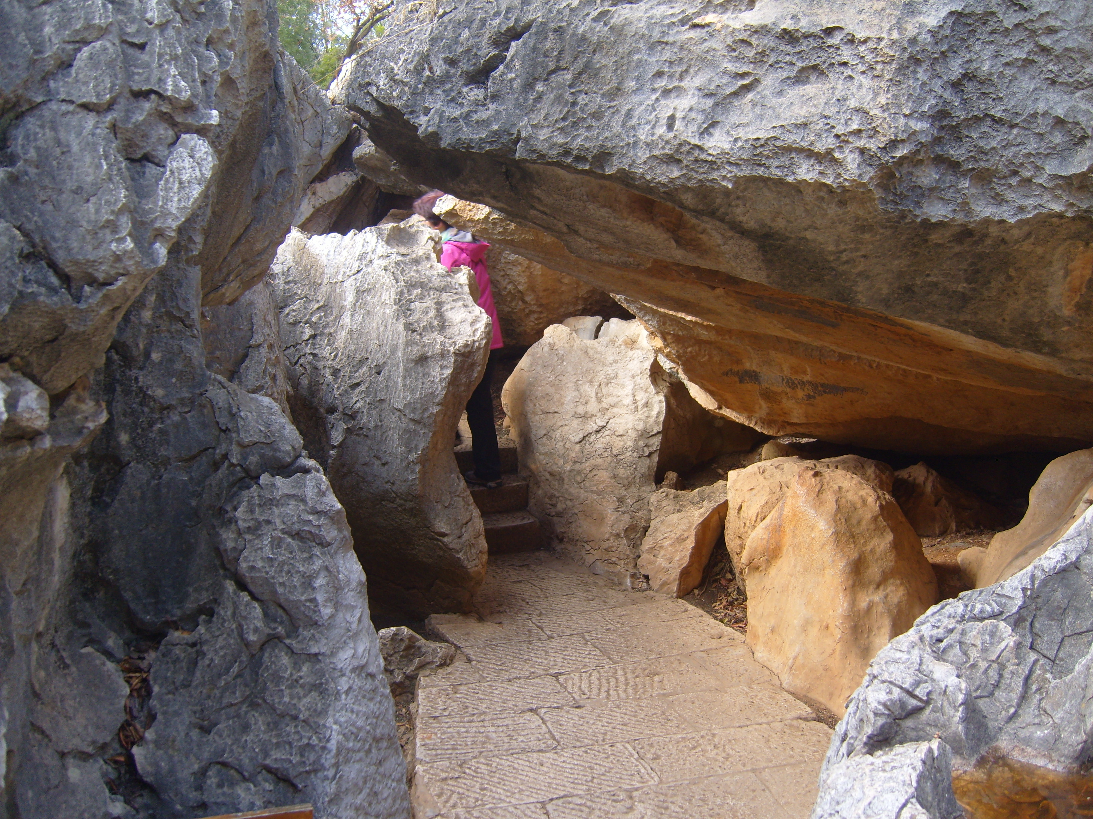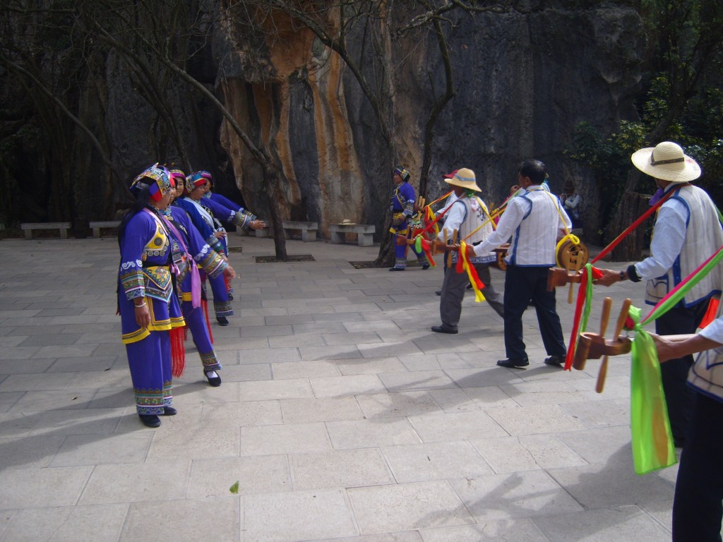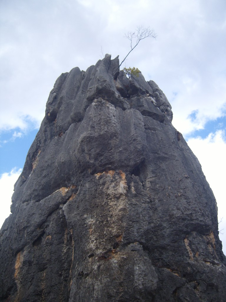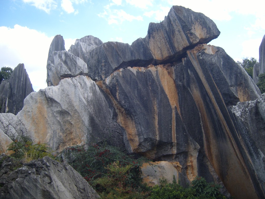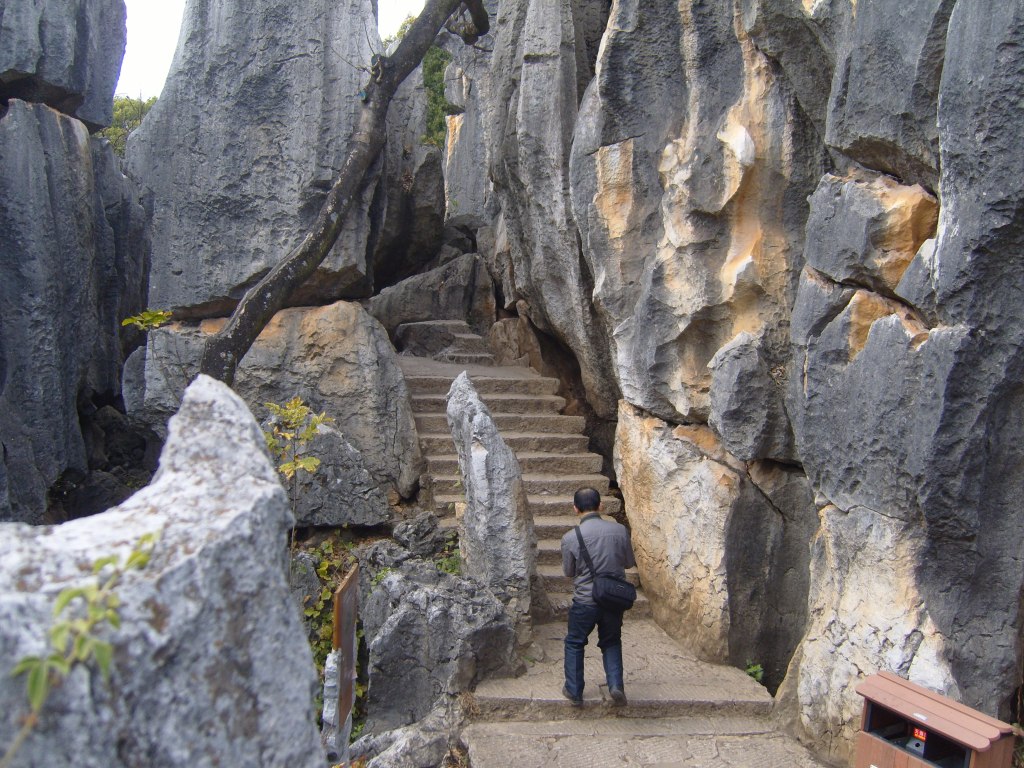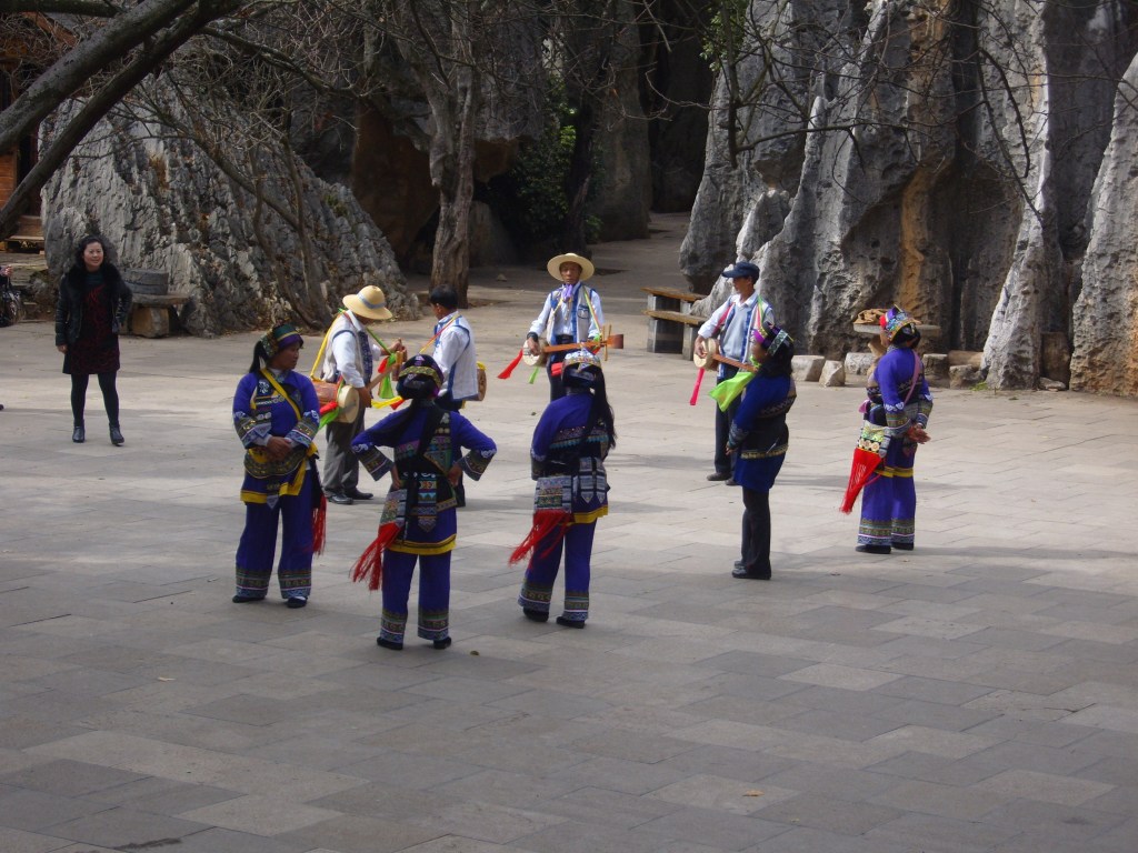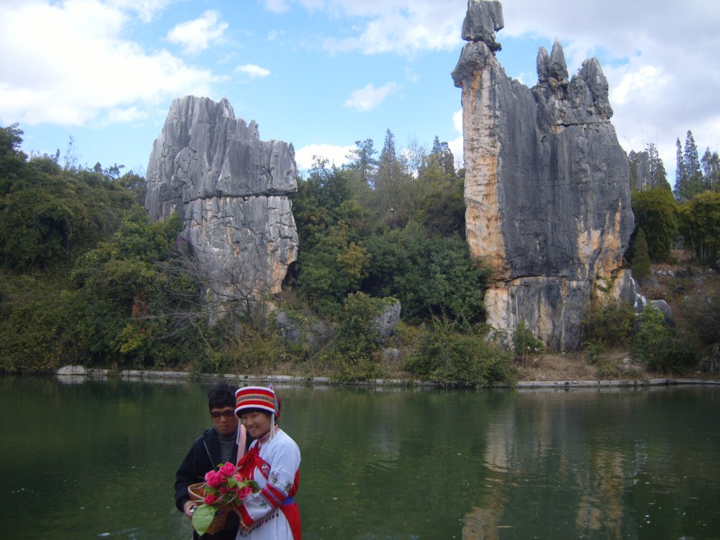 While I was staying in Kunming, I somehow (don’t actually remember how) booked a bus trip to the Stone Forest, a literal translation from Chinese 石林; Shílín. I don’t remember the bus trip at all, but it was definitely better to arrive than travel hopefully and visit the usual tourist tat emporium on the way back.